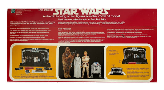Vintage 2005 Star Wars Early Bird Certificate Package With Action Figure Display Stand And The First Four Mail Away Action Figures