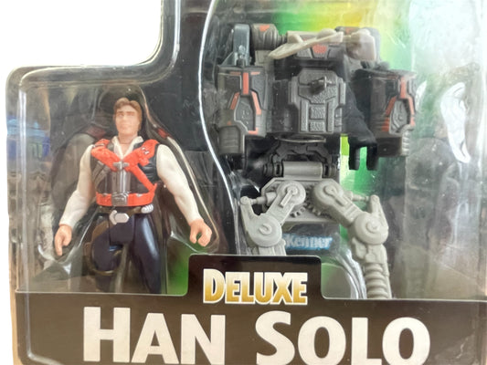 Vintage Kenner 1996 Star Wars The Power Of The Force Deluxe Han Solo Action Figure With Smuggler Flight Pack - Brand New Factory Sealed Shop Stock Room Find