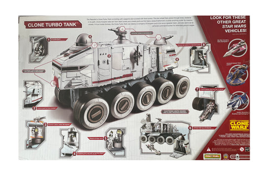 Vintage Star Wars 2009 The Clone Wars - Electronic Clone Turbo Tank Vehicle With Launching Speeder Bike And Exclusive Tank Gunner Action Figure