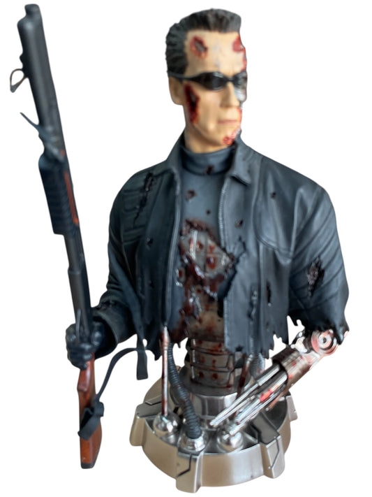 Vintage Gentle Giant 2003 Ultra Rare Limited Edition Terminator 3 - Rise Of The Machines T-850 Battle Damaged Chrome Plated Mini Bust Statue Figurine Light-Up Version - Former Shop Stock
