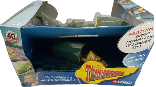 Vintage Corgi 2005 Gerry Andersons Thunderbirds 40th Anniversary DieCast Vehicle Set - Thunderbird 2 With Thunderbird 4 - Factory Sealed Shop Stock Room Find.