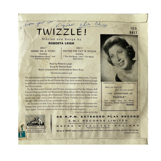 Vintage 1958 His Masters Voice Presents Twizzle Stories And Songs By Roberta Leigh - 45RPM EP Extended Play Vinyl Record In The Original Sleeve
