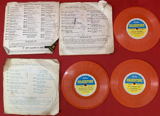 Vintage 1960s Gala Goldentone Set Of 6 Childrens Orange Vinyl Records 78RPM 6 Inch - Stories & Nursery Rhymes