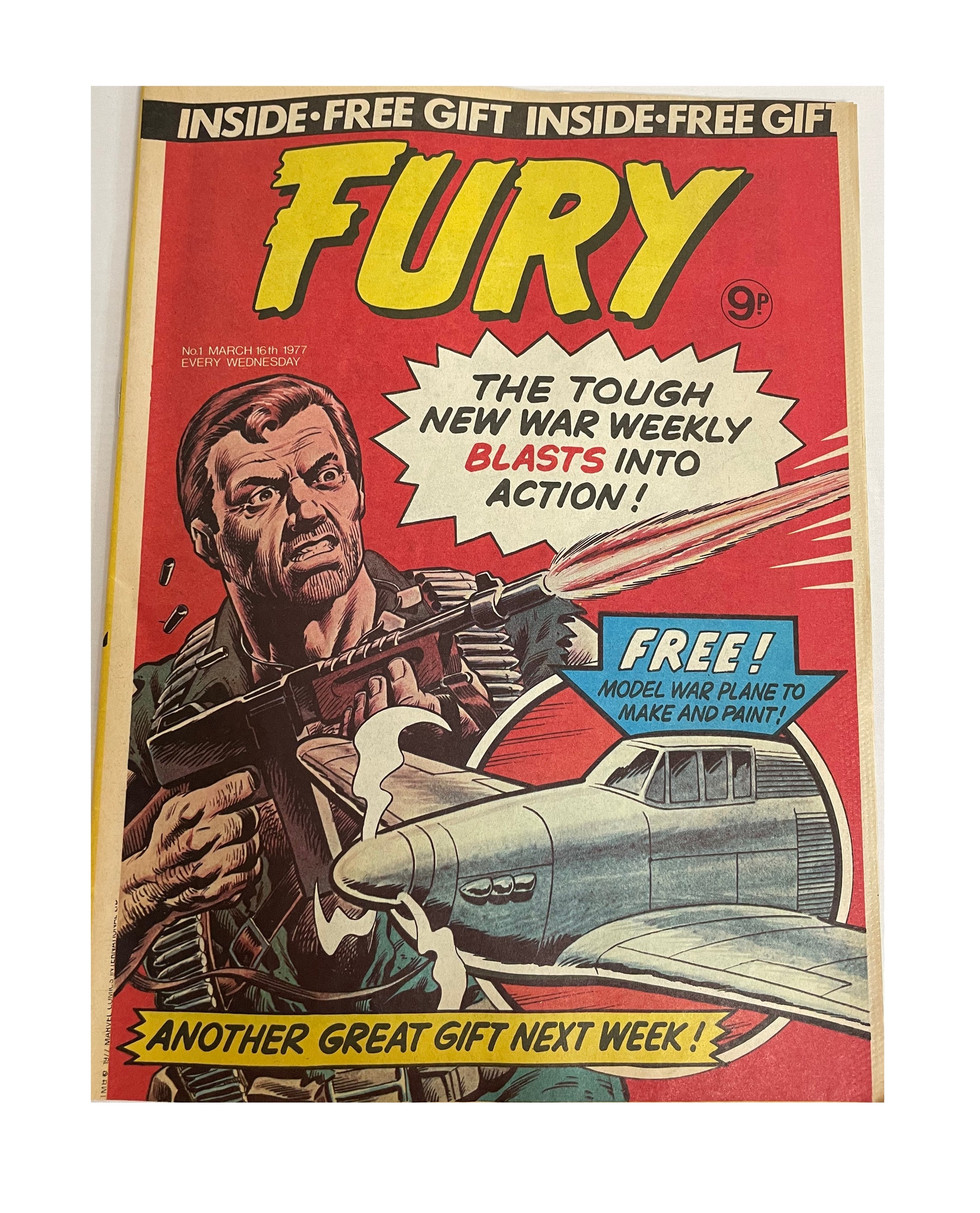 1977 Fury Weekly Comic Magazine Number 1 - Fantastic First Issue - With The Free Model War Plane To Make And Paint - March 16th 1977 - Former Shop Stock