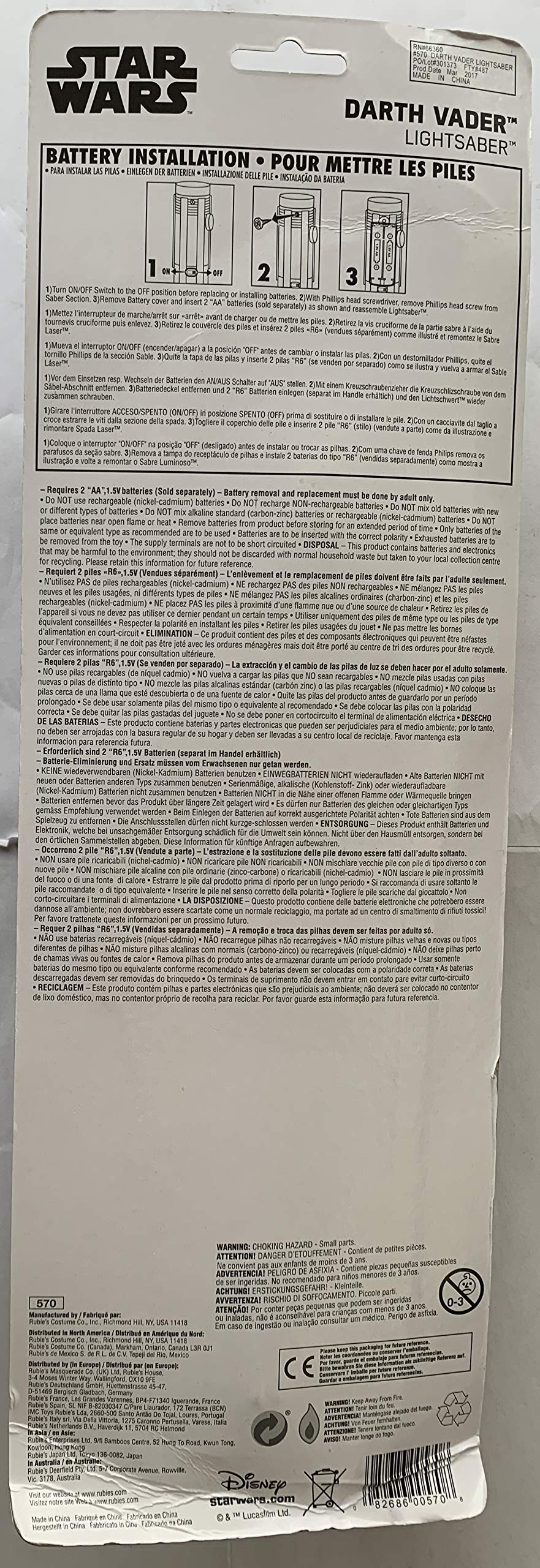 Star Wars Episode 4 A New Hope Darth Vader Electronic Red Lightsaber - Former Shop Display Item. Released by rubies in conjunction with Disney as part of their series of Star Wars Lightsabers. Enter the world of Star Wars and launch into action and adventure! Fight with the Force - all it takes is a flick of the wrist with the Star Wars Extendable Lightsabers. Each weapon has a flip-out extending blade that's sure to strike fear in all who dare oppose you. Lights up with the flick of a switch and extends to approximately 30-inches. Sturdy injection molded plastic with light up telescopic blade. Former Shop Display Item. Spent many months in a display counter before being returned to the packing and retired to the stock room for 5 years. Comes in the original packing which has been neatly resealed with clear tape. All orders received before 4.00pm Monday to Fridays are shipped the same day