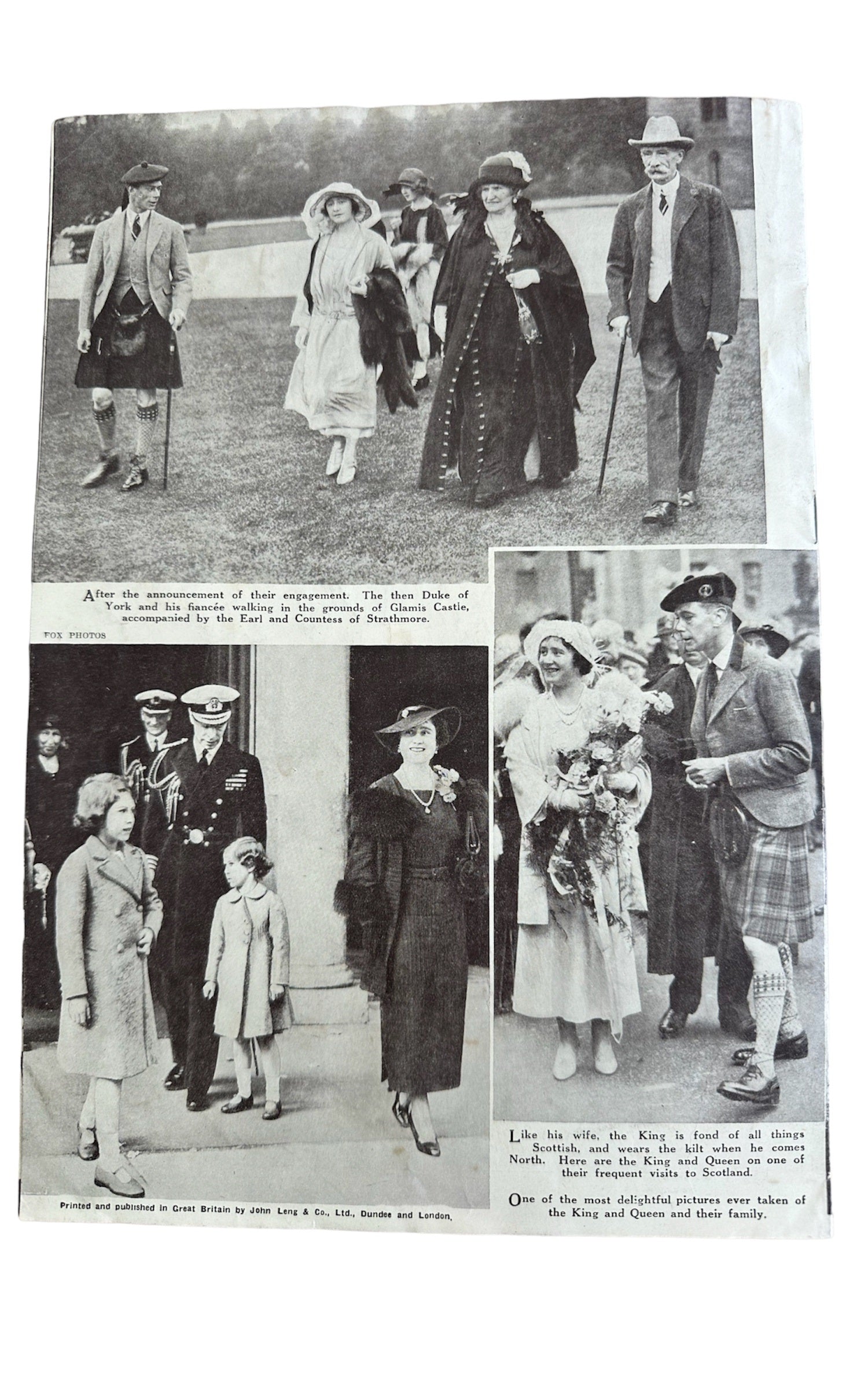 Our Scottish Queen was a supplement that came with the People's Friend magazine in 1937 to celebrate the coronation of Queen Elizabeth, who was the mother of Queen Elizabeth II. It was an 8-page souvenir picture supplement that featured photos of the royal family. Fantastic condition very very rare item, with only minor signs or wear which is mainly along the edges, internally the item is in near mint condition. Fantastic very rare highly collectable official royal merchandise. All Orders received before 4.00pm Mondays to Fridays are dispatched the same day.