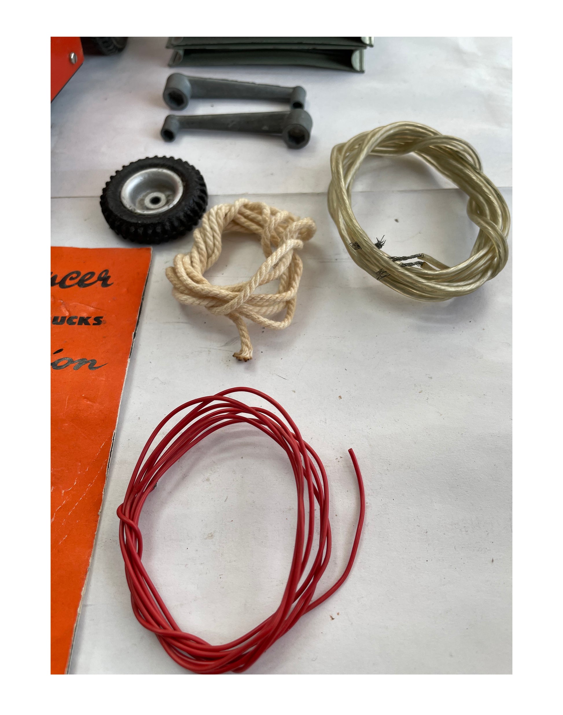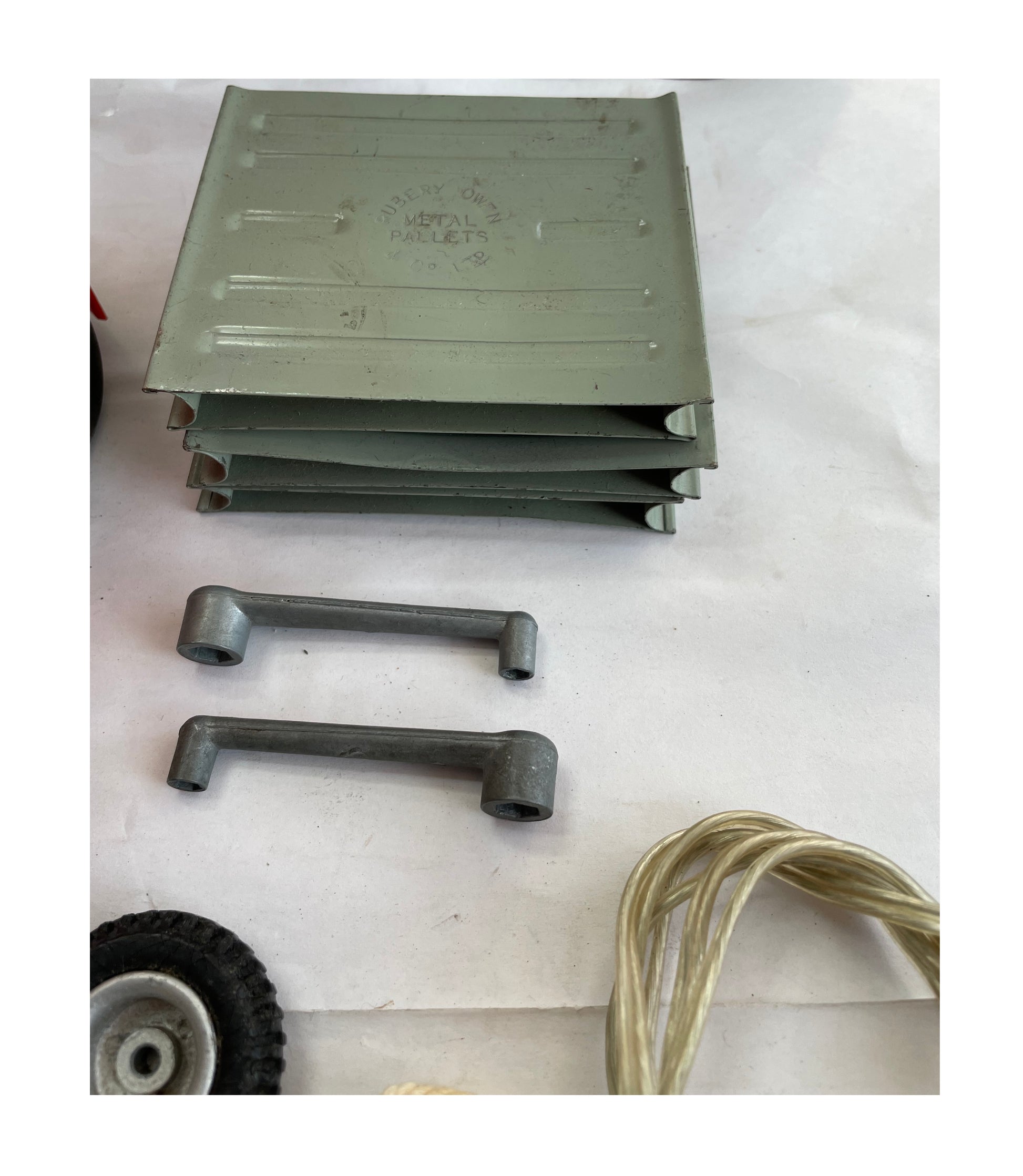 Vintage 1950's Victory Industries Conveyancer Fork Truck 1:14 Scale Battery Operated Model - In The Original Box. Released by Victory Industries in the 1960's as part of their series of Industrial Use Die-cast replica model vehicles. This fantastic Conveyancer Fork Truck is finished in orange and black and measures 7 1/2 inches long by 3 1/2 wide by 8 inches tall, it is battery operated using three 1.5 volt batteries that drive the motor which moves the truck forward or backwards with controlled steering of the rear wheels. The Forks are operated by a lever on the floor of the cab. The model is in very good condition over all, which is amazing considering its age and shows little signs of usage and was mainly used for display. The motor is in working condition, which does move the truck forwards and backwards although very slowly, but I have not been able to get the forks to work. It probably needs the terminals cleaned as it has not been used in years. Includes all the accessories and spares as seen in the pictures. Comes in the original box from the 1960's which is in very good condition, but does have some shelf wear which is mainly on the edges. A very nice example of a very very rare highly sort after collectors model from over 60 years ago. All Orders Received Before 4.00pm Mondays to Fridays are shipped the same day