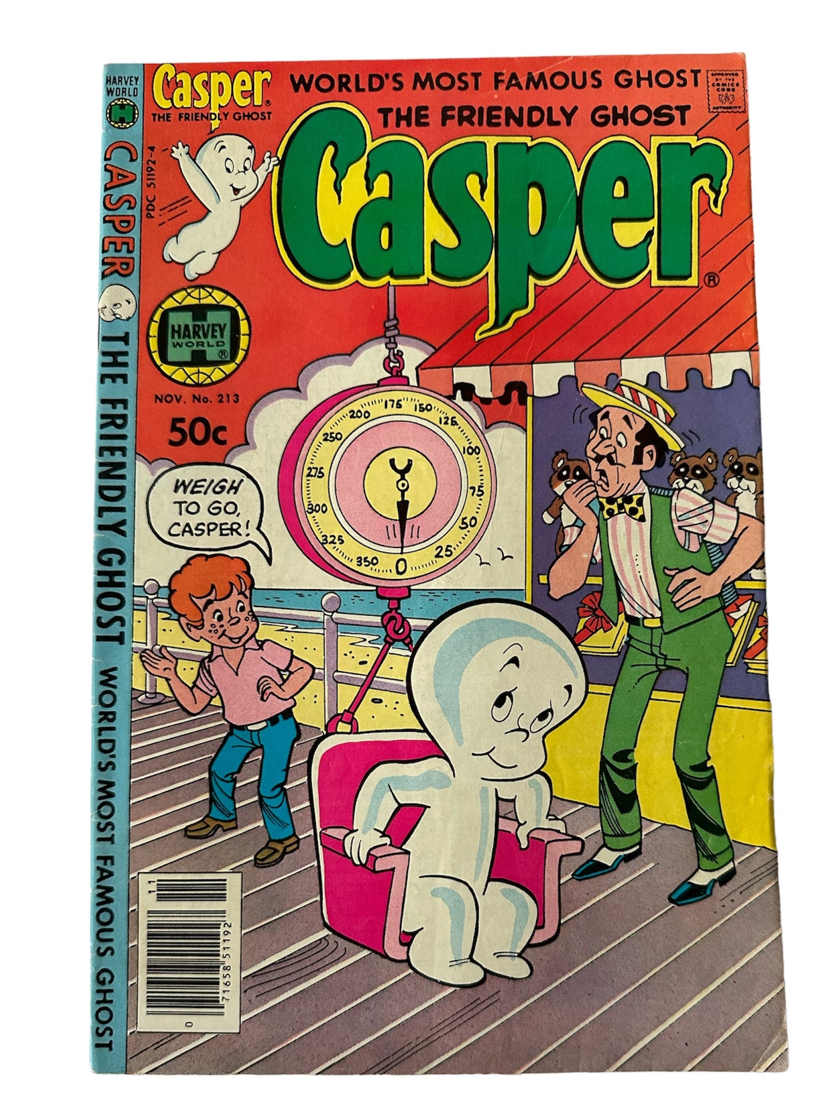 Vintage 1980 Harvey World - The Friendly Ghost Casper Comic Issue Number 1213 - Special Halloween Edition - Very Good Condition Vintage Comic. Released by Harvey World in November 1980 and is issue number 213, in The Friendly Ghost Casper series of comics. This fantastic issue of The Friendly Ghost Casper Comic is issue number 213, with 36 pages of features that include a three full colour strip stories featuring the Worlds Most Friendly Ghost in - Little Donkey Head, Silent World, and The Big Bu-Bu, plus Spooky, Boo, Richie Rich and much more. Comes Bagged and boarded. Former shop stock from a closed down Toy & Comic Shop. Some minor signs of shelf wear along the edges, but otherwise very good. All Orders received before 4.00pm Mondays to Fridays are dispatched the same day.