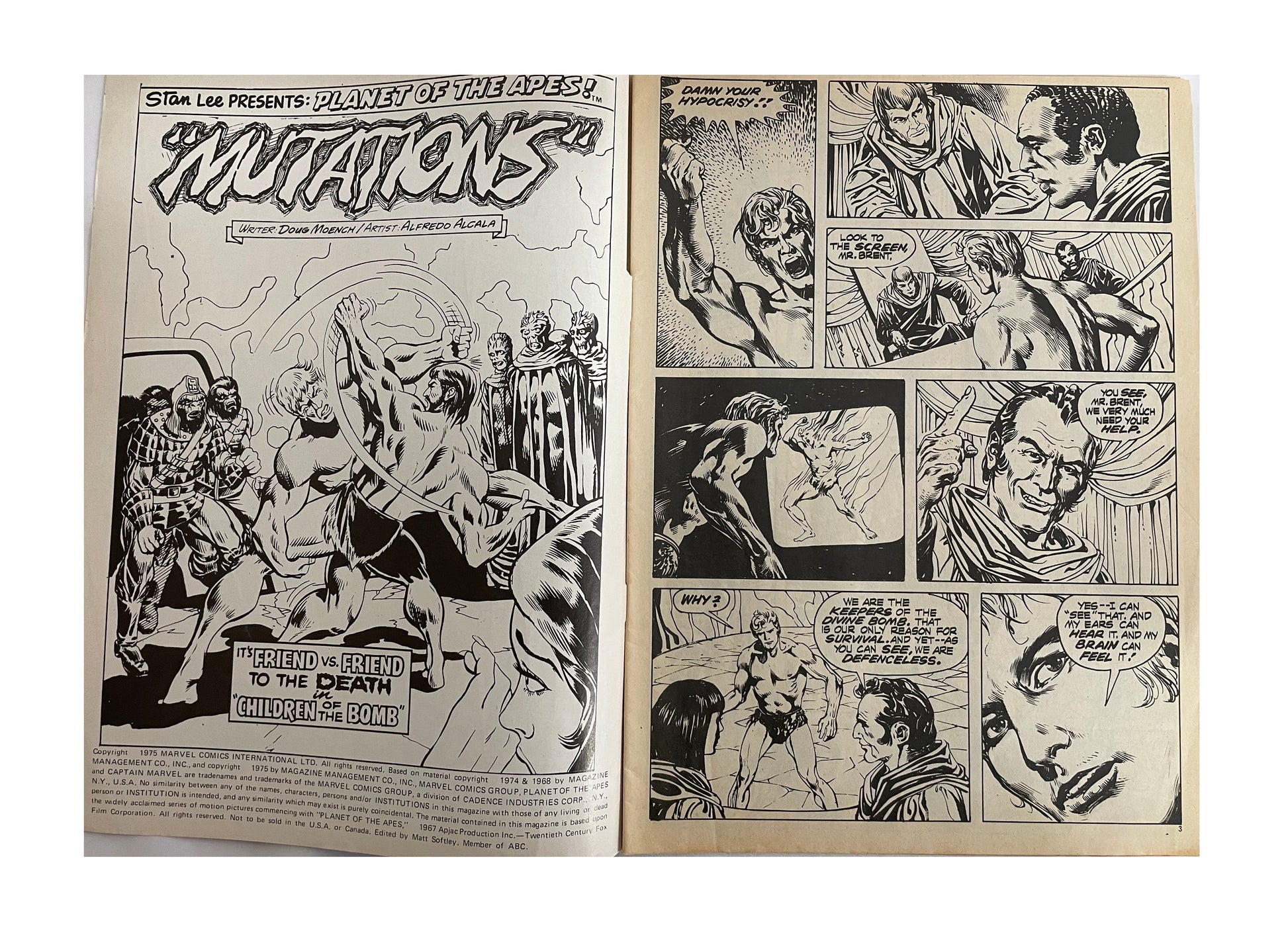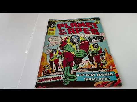 Vintage 1975 Marvels Comics - Planet Of The Apes Comic Issue No. 42 - August 9th 1975 - Former Shop Stock. Released by Marvels Comics on August 9th 1975 and is issue number 42 of this long running comic that was based on the 1970's movies. This fantastic comics main feature is part six of the adaptation of Beneath The Planet Of The Apes . Also includes comic strips featuring Captain Marvel, and Warlock. Very Good Condition vintage comic, but does have a name and number wrote on the back cover, and some very very minor signs of browning to a few of the page edges, due to age and the type of paper that was used back in the day. Former Shop Stock of a closed down Toy & Comic Shop. Comes bagged and boarded.