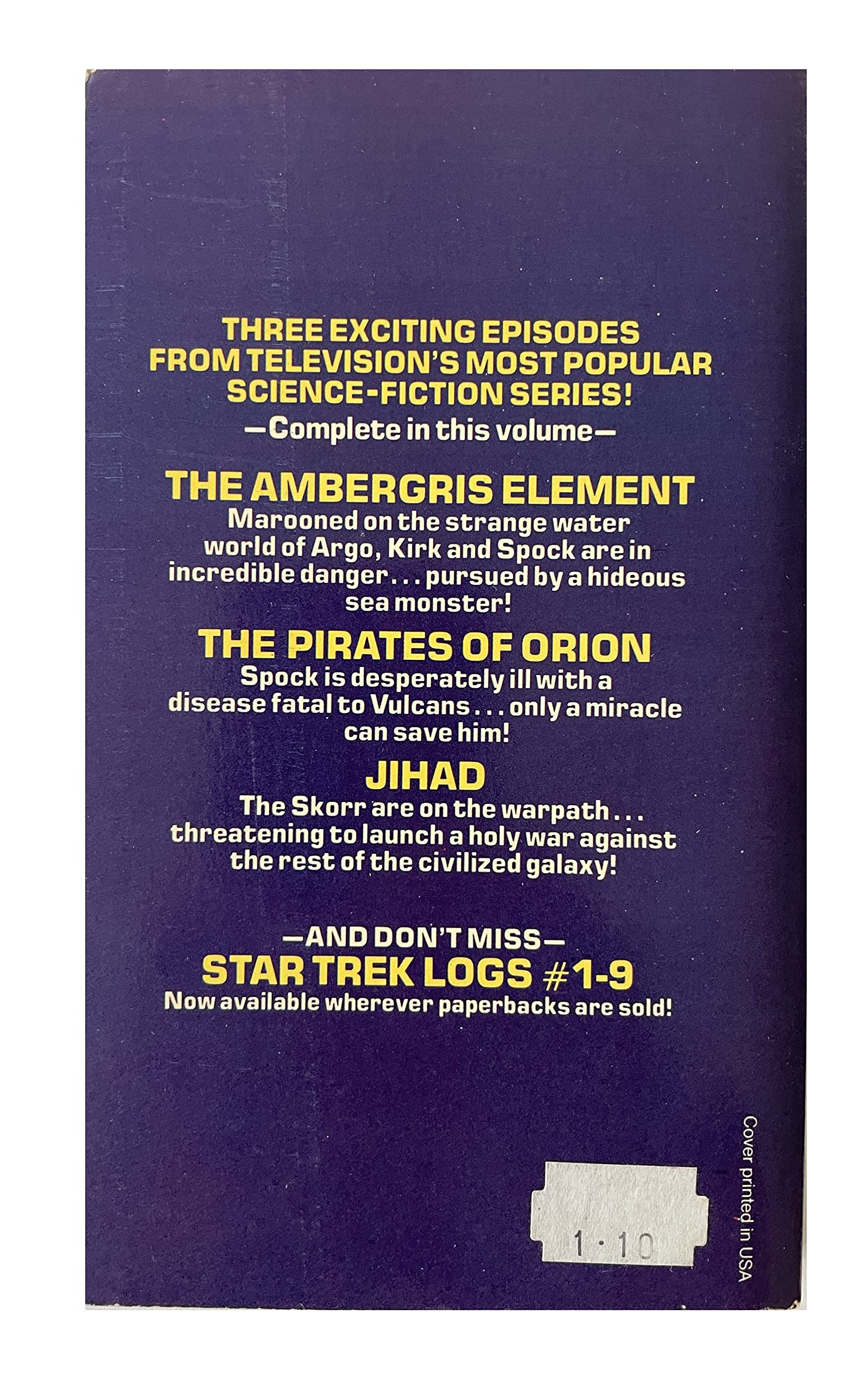 Vintage 1979 Star Trek Log Five - Adapted From The Animated TV Series - Paperback Book - By Alan Dean Foster. Released by Balentine Books in 1979 and is the Fifth in the series of the Log Books adapted from the Animated TV series. This fantastic Log Five book includes three adaptions of episodes that featured in the animated series including - The Ambergris Element - The crew of the Enterprise explore a submerged culture on a water world - The Pirates of Orion - While Spock lies ill, Orion pirates hijack the drug shipment desperately needed to save his life - Jihad - The Vedala, the oldest known space faring race, summon Kirk and Spock to recover the Soul of the Skorr, a stolen religious artifact that has the potential to ignite a holy war across the galaxy. The book is in very good condition over all, which is amazing considering it is now almost 43 years old. The front and back covers are nice clean and bright with only some very very minor signs of shelf wear along the edges. The spline is also in fantastic condition with only the smallest signs of wear on the tips of the top and bottom edges. Internally the book is in fantastic condition, all 198 pages are present and attached, they are clean and bright without any signs of damage or markings on any page, with the exception of some minor age sports on a few of the pages. A truly fantastic example of a very rare vintage Star Trek book from 1977. All orders received before 4.00pm Monday to Fridays are shipped the same day