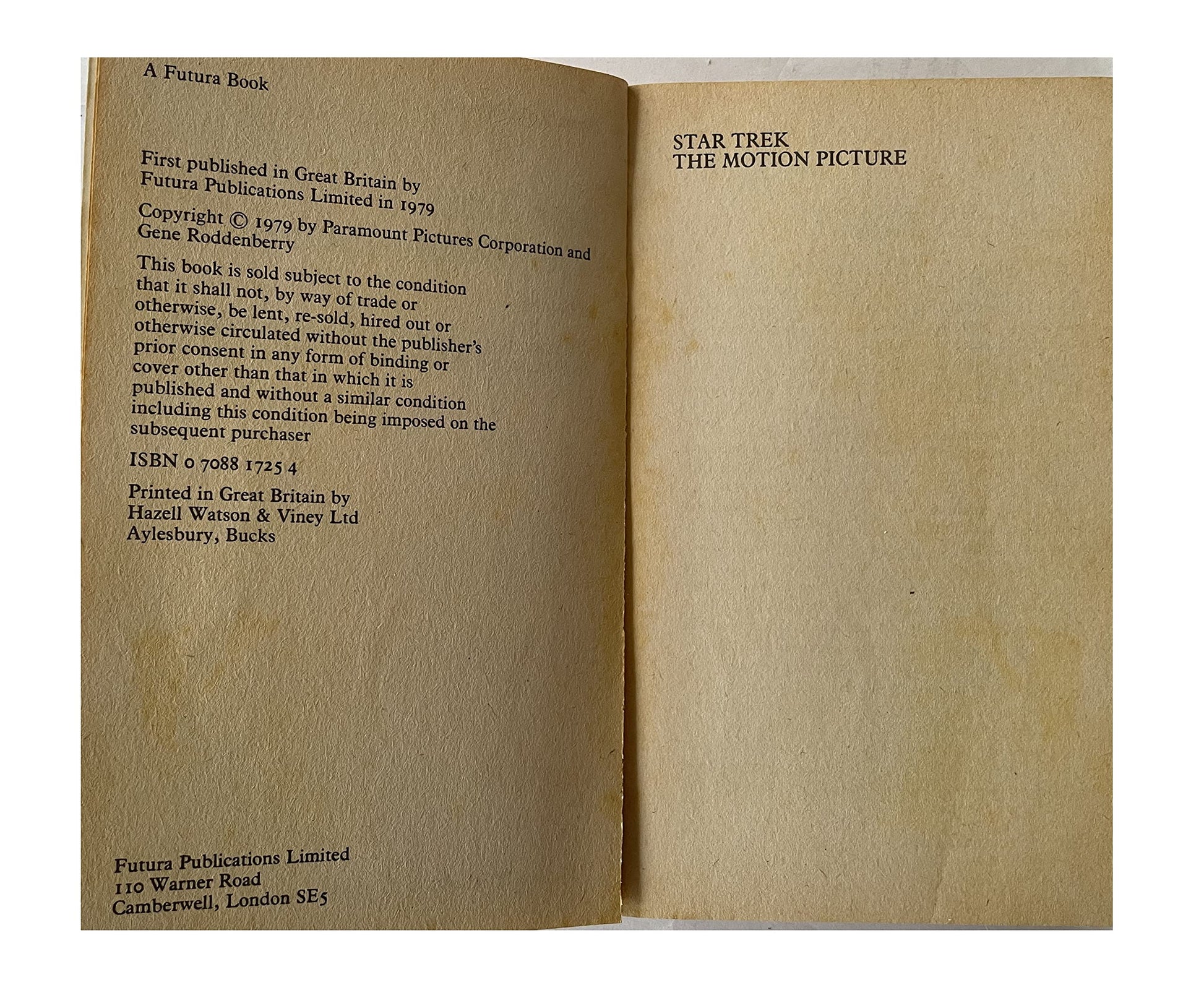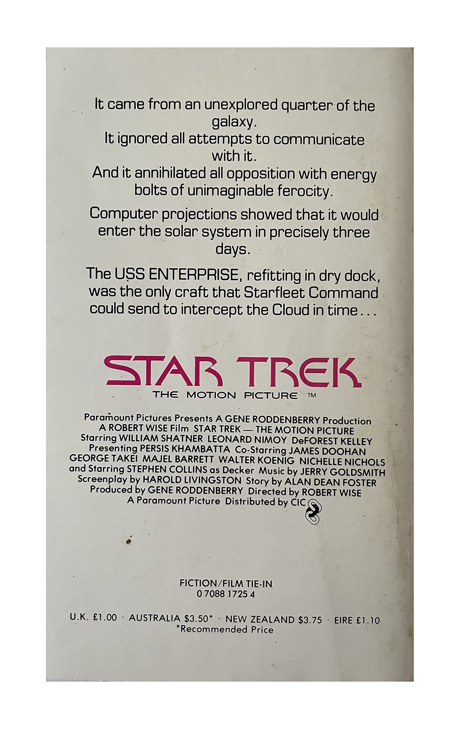 Vintage 1979 - Star Trek The Motion Picture Paperback Novel Of The Blockbuster Movie By Gene Roddenberry. Released by Futura Publications in 1979 as part of their series of Movie-Tie in novels. Their historic 5-year mission is over. Kirk, Spock, McCoy, Scotty, all the crew have scattered to other jobs or other lives. Now an unimaginable power has come from an unexplored quarter of the galaxy. It ignored all attempts to communicate with it. And it annihilated all opposition with energy bolts of unimaginable ferocity. Computer projections showed that it would enter the solar system in precisely three days. The USS Enterprise, refitting in dry dock, was the only craft that Starfleet Command could send to intercept the cloud in time... The book is in very good over all condition, which is amazing considering that it is now almost 43 years old. The front and back covers are still nice and bright, but does have some minor signs of wear which is mainly along the edges and a few minor creases. The spline is also in fantastic condition with only some very very minor signs of wear on the tips of the edges. Internally the book is in very good condition all 224 pages are present and attached, they are clean and bright without any signs of damage or wear or markings on any page, other than the page edges are beginning to brown slightly due to age and the type of paper that was used back in the day. A truly fantastic example of a very rare vintage Star Trek paperback book from yesteryear. All Orders received before 4.00pm Mondays to Fridays are dispatched the same day.
