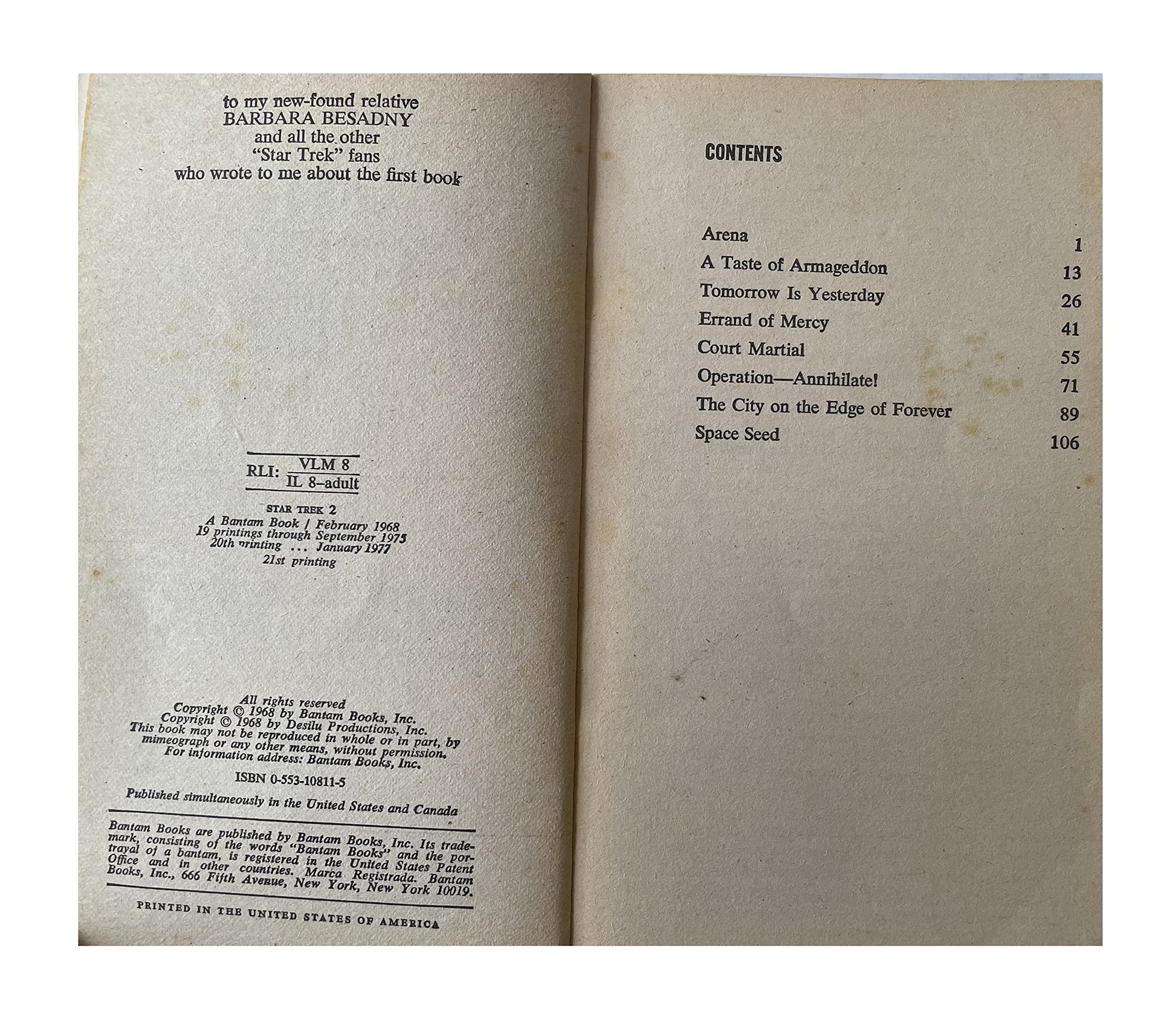 Vintage 1977 Star Trek 2 - Adapted From The Original Television Series - Paperback Book - By James Blish. Released by Bantam Books in 1977 and is the second in the series of the Star Trek Books adapted from the Original Television series scripts. This fantastic Star Trek 2 book includes eight adaptions of episodes that featured in the original TV series including - Arena, A Taste of Armageddon, Tomorrow Is Yesterday, Errand of Mercy, Court Martial, Operation - Annihilate!, The City on the Edge of Forever, and Space Seed. The book is in very good condition over all, which is amazing considering it is now almost 45 years old. The front and back covers are nice clean and bright with only some minor signs of shelf wear along the edges. The spline is also in fantastic condition with only the smallest signs of wear on the tips of the top and bottom edges. Internally the book is in fantastic condition, all 122 pages are present and attached, they are clean and bright without any signs of damage or markings on any page, with the exception of some minor age sports on a few of the pages. A truly fantastic example of a very rare vintage Star Trek book from 1979. All orders received before 4.00pm Monday to Fridays are shipped the same day