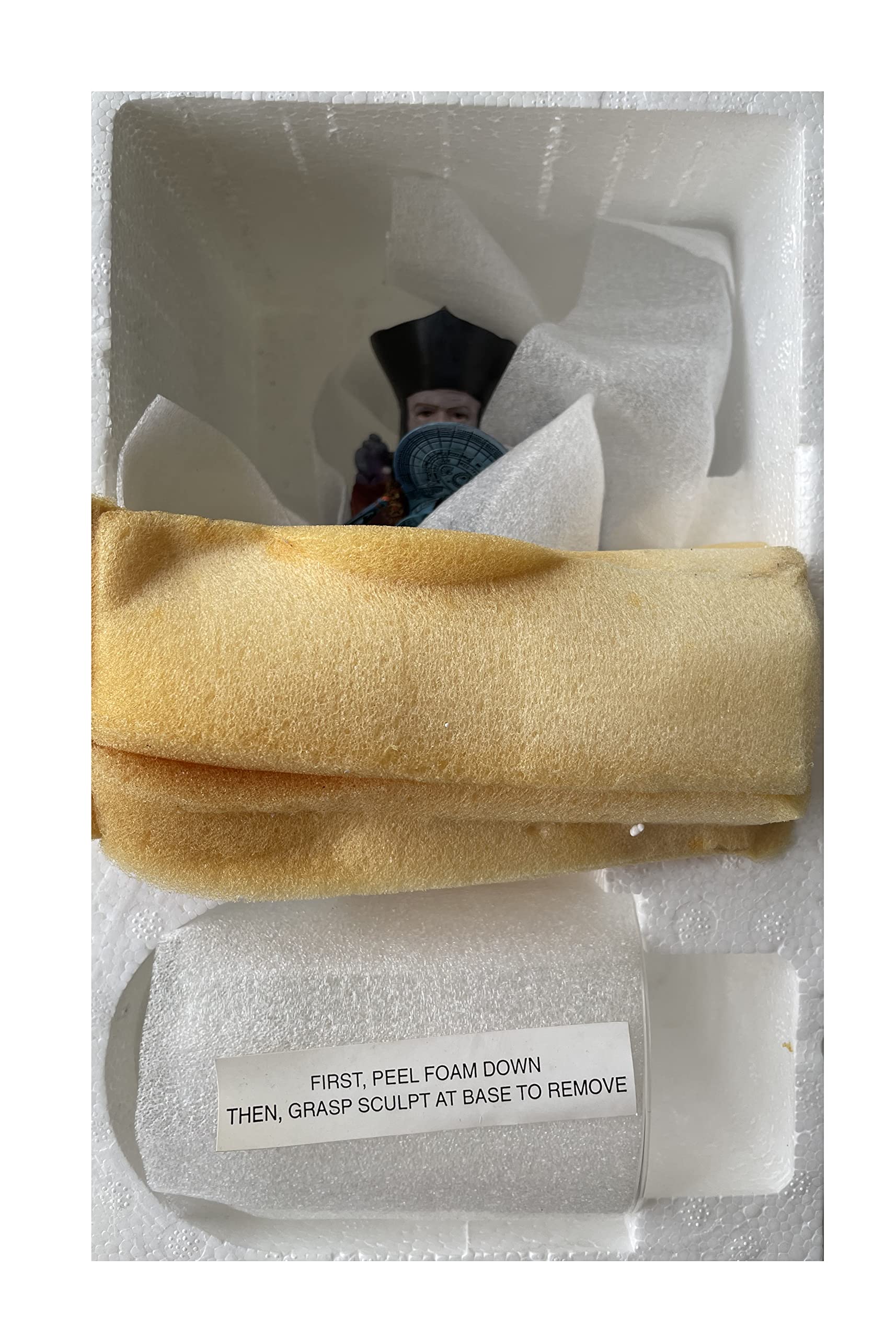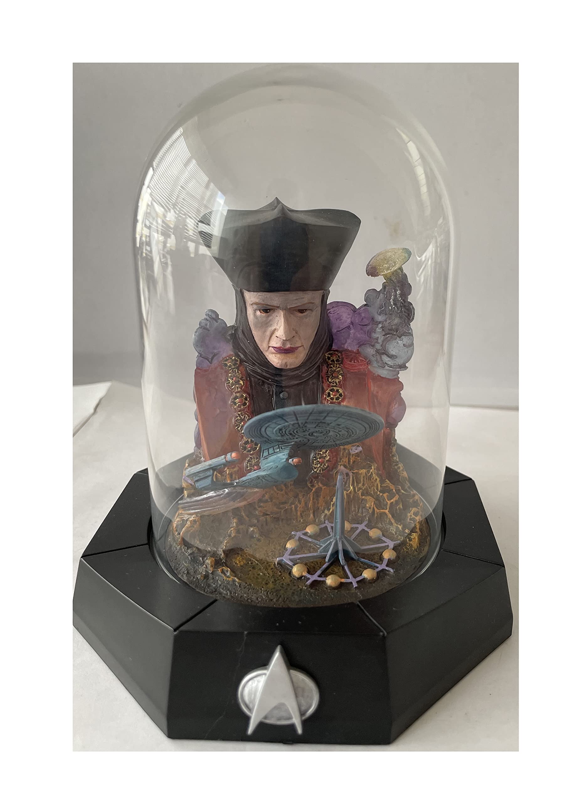 Vintage 1998 Franklin Mint - Star Trek The Next Generation Limited Edition Diarama - Encounter At Farpoint - Q - USS Enterprise - Shop Stock Room Find. Released by Franklin Mint in 1998 as part of their series of Star Trek Glass Domed Diaramas. This fantastic Star Trek The Next Generation Encounter At Farpoint Diarama measures approximately 4 inches tall by 4 1/2 inches in diameter and features a diarama of Encounter At Farpoint which includes Q in his Judges Robes, the USS Enterprise, The Alien Jelly Fish and the Transmission Beacon. Includes a glass dome than sits over the top of the diarama, but can be displayed with or without this. Limited edition release numbered at 00480. Shop Stock Room Find. Discovered in the store room of a closed down shop with a whole host of other Star Trek items from a similar era. A truly fantastic example of a very very rare and highly collectable Franklin Mint Star Trek Collectable from Yesteryear. All orders received before 4.00pm Monday to Fridays are shipped the same day.