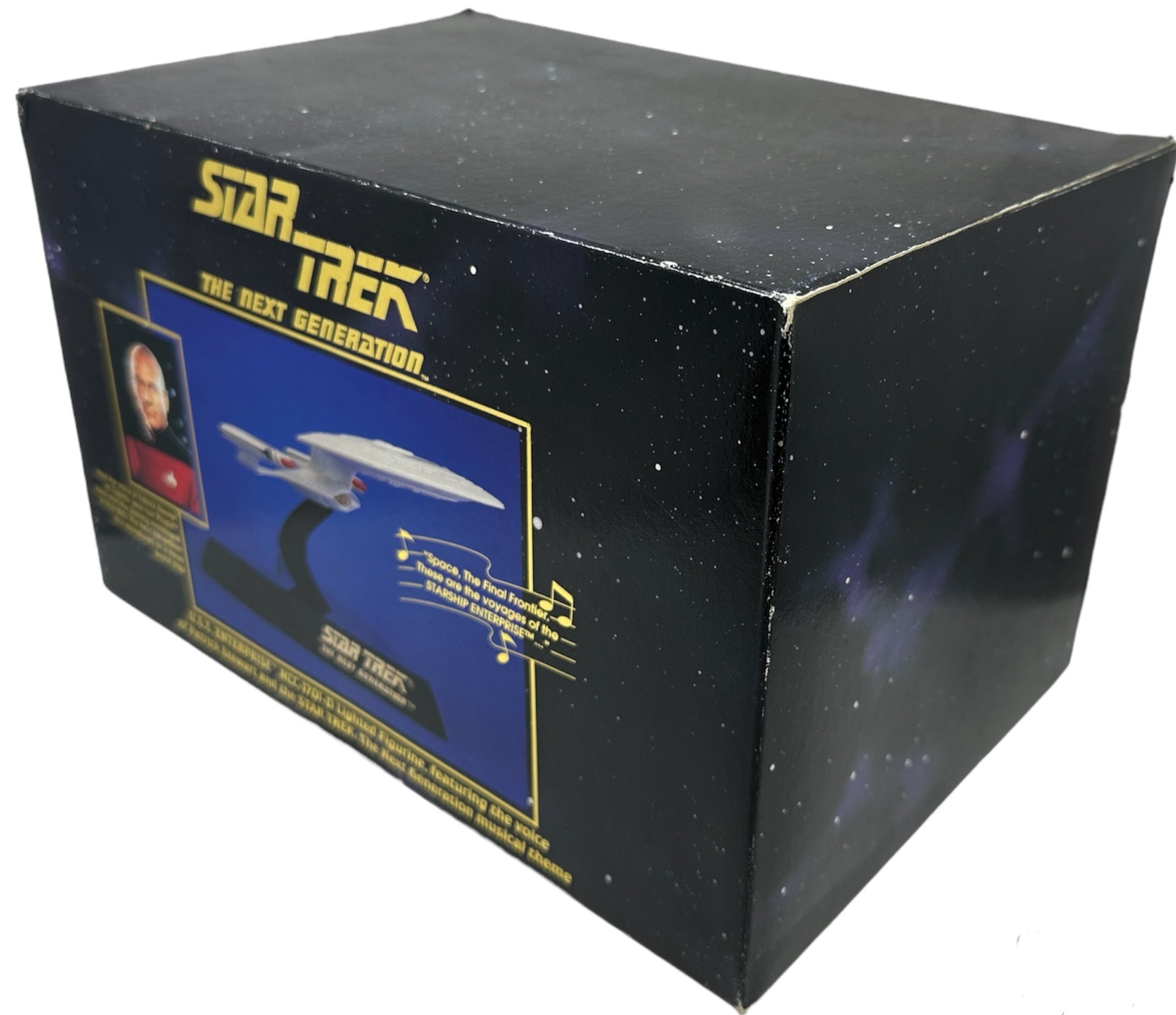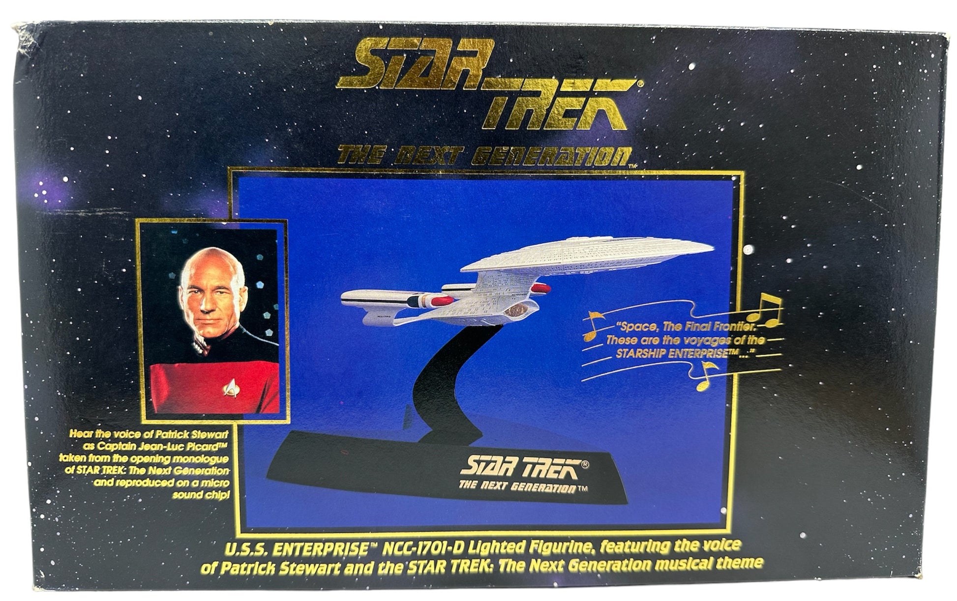 Vintage Willits 1994 Star Trek The Next Generation USS Enterprise NCC-1701D Lighted Figurine With Picards Voice And Theme Tune On Stand - Factory Sealed Shop Stock Room Find