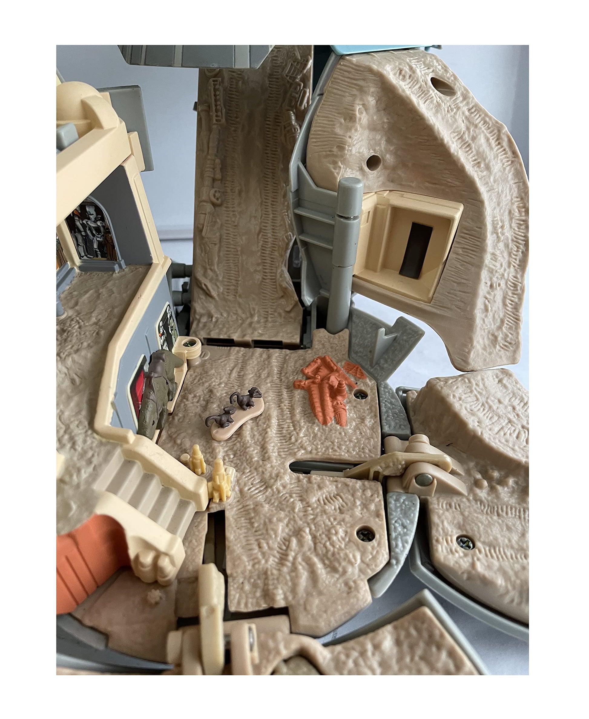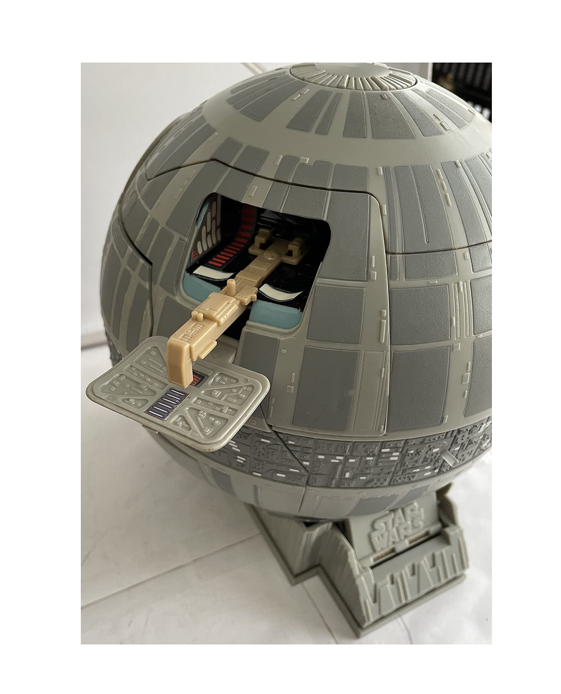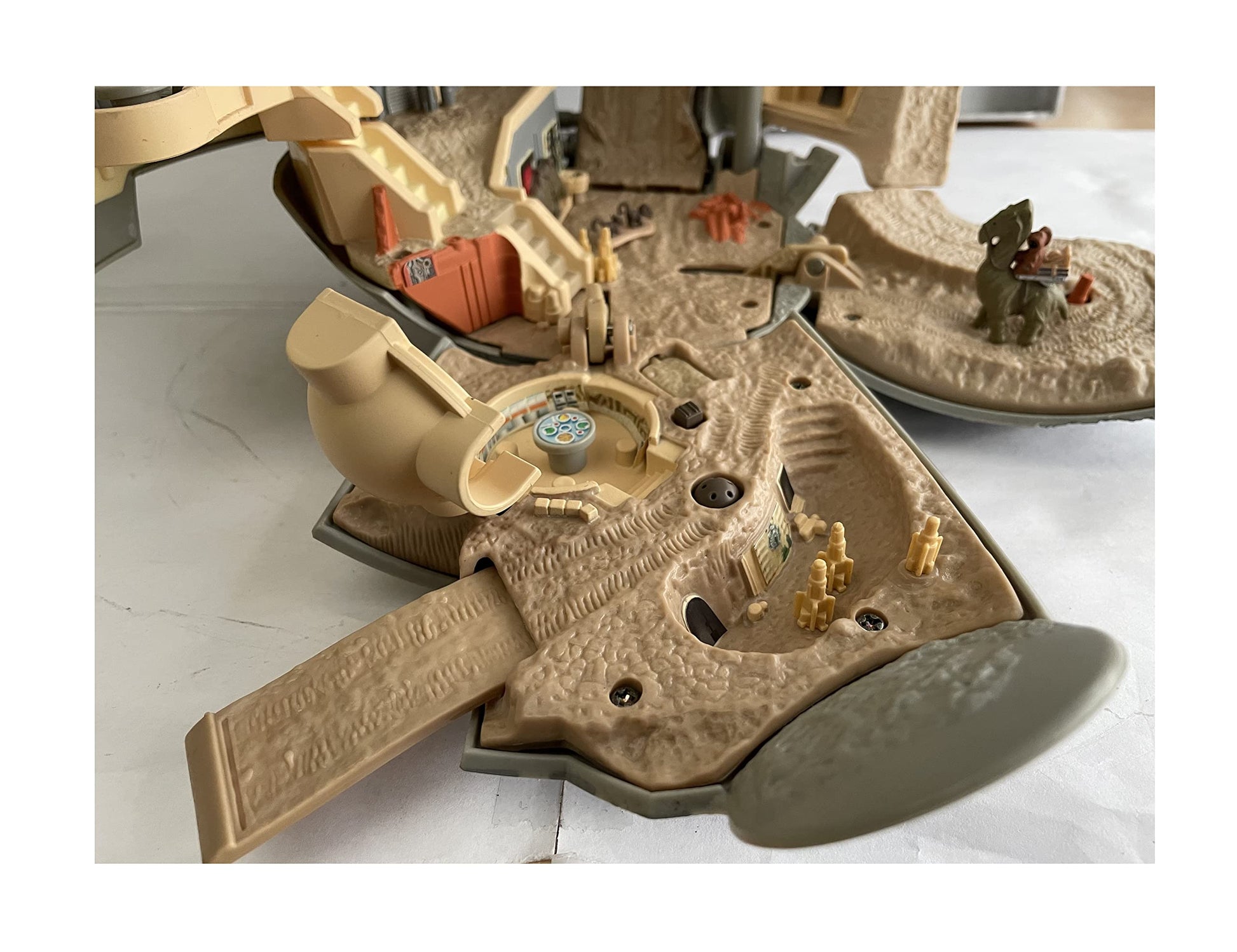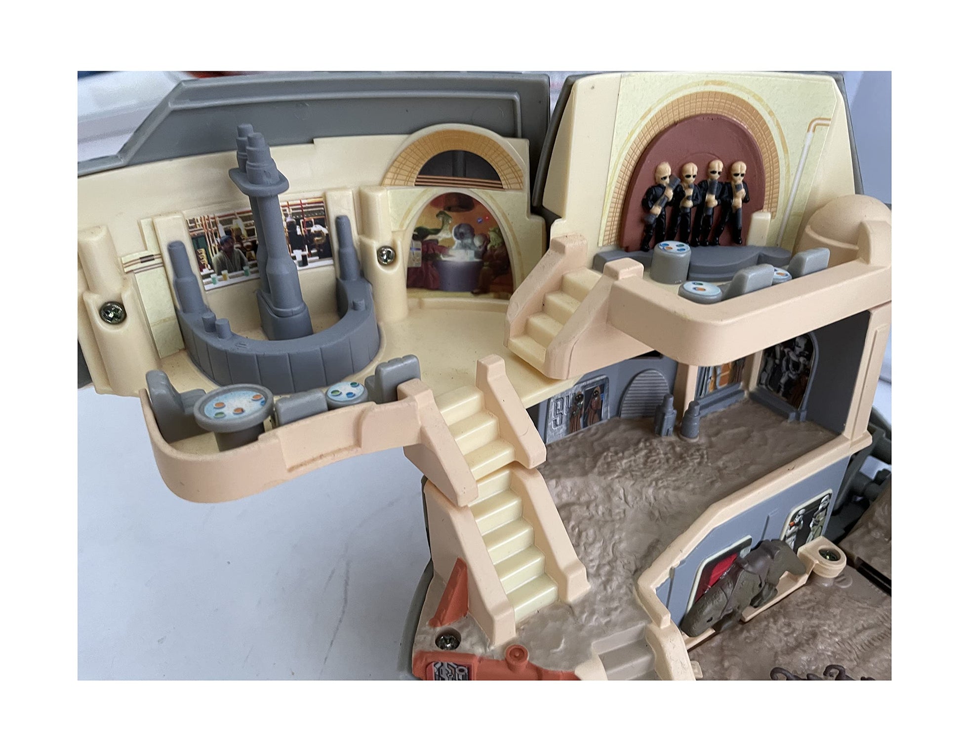 Vintage 1993 Star Wars A New Hope Micro Machines Double Takes Death Star Action Play Set Double Action Transforming Into Tatooine - In The Original Box. Released by Galoob in 1997 as part of their series of Star Wars Micro Machines Double Takes Action Play Sets. This fantastic Double Takes Death Star Double Action Transforming Play Set opens up to reveal the the planet Tatooine as seen in A New Hope and the features include - Death Star Trench, Vehicle Posts That Simulate Flying, Telescoping Tractor Beam, Hanger Dome, Revolving Vehicle Mount, Docking Bay, Fold Out Landing Pad, Roll Down Ramps, Obi-Wan Kenobi's House, Pop-up Tusken Raider Ambush, Cantina Bandstand, Cantina Bar, Lars Moisture Farm With Flip-Up Subterranean Living Quarters, Secret Access Ramp, Pop-up Secret Land Mine and Flip Over Skeletal Remains. Also includes Obi-Wan Kenobi Mini Figure, Ronto With Jawas Mini Figure and Scurrers Mini Figures. The playset is in fantastic condition, it was only ever used in a display where it spent many years before being returned to the box and stored away in a cupboard. It is in full working condition, and transforms perfectly, some of the stickers are beginning to lift due to age, but this can be easily rectified. The down side is that it is missing a few mini figures, Beru Lars and Owen Lars and also the Millennium Falcom which must have fallen out of the box at some point. Comes in the original box with the inner packing, which is in good solid condition with only some minor signs of wear on the edges. A truly amazing Star Wars playset from 25 years ago. All Orders Received Before 4.00pm Mondays to Fridays are shipped the same day