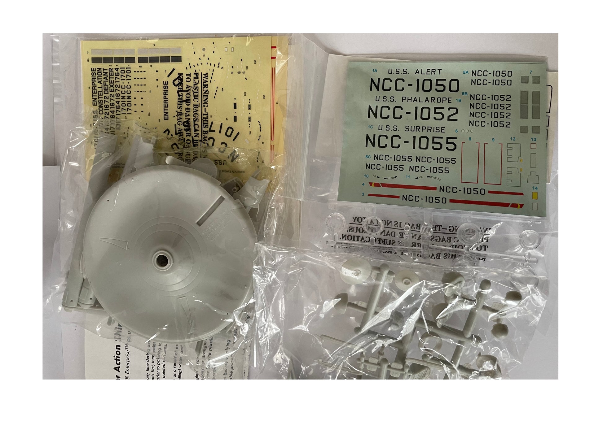 Vintage 2006 Star Starship Modeler Trek Kit Factory - USS Enterprise Model Kit And Perimeter Action Ship Conversion Kit - Mint Condition And Factory Sealed. Released in 2006 by Kit Factory as part of their series of Starship Modeler Model Kits. This fantastic Starship Modeler Perimeter Action Ship, includes all of the components from the Polor lights USS Enterprise Model kit no. 4200 including instructions and decals, plus the Alert Class Perimeter Action Ship Conversion Plastic Model Kit which includes the addition components needed to convert the Enterprise, together with decals and full instructions. Brand New Factory Sealed Shop Stock Room Find. Discovered in the store room of a closed down shop with a whole host of other model kits from a similar era.