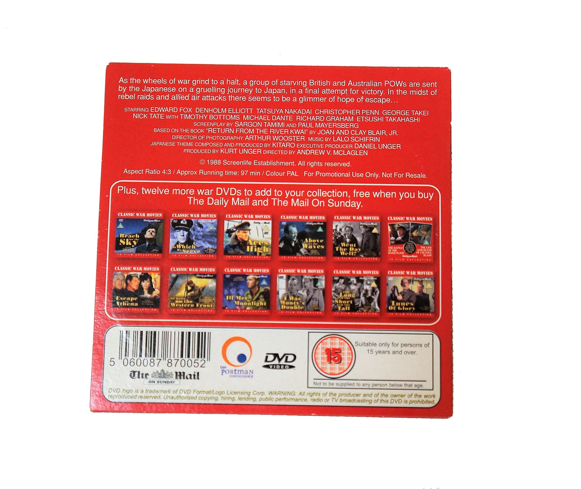 Vintage The Daily Mail Classic War Movies - Return From The River Kwai - Edward Fox, Denholm Elliott, Christopher Penn - Shop Stock Room Find. Released by The Mail On Sunday Newspaper as part of their Classic War Movies promotion on DVD's. As the wheels of war grind to a halt, a group of starving British and Australian POWs are sent by the Japanese on a gruelling journey to Japan, in a final attempt for victory. In the midst of rebel raids and allied air attacks there seems to be a glimmer of hope of escape.... Shop Stock Room Find. Discovered in the store room of a closing down shop with a whole host of other DVDs from a similar era. All orders received before 4.00pm Monday to Fridays are dispatched the same day.