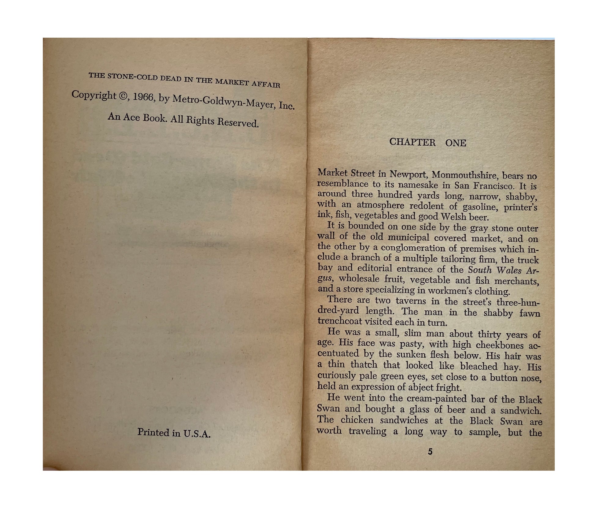 Vintage The Man From U.N.C.L.E The Stone-Cold Dead In The Market Affair Paperback Novel 1966 By John Oram. Released by Ace Books in 1966 and is based On The Exciting MGM-Arena TV Series of the time starring Robert Vaughn and David McCallum. Napoleon Solo and Illya Kurakin, UNCLES trouble shooters find themselves in Wales in a desperate bid to foil THRUSHs unscrupulous plans for world take-over. This fantastic The Man From U.N.C.L.E Paperback Book, is in very good condition over all, which is amazing considering it is now 56 years old, the front and back covers are nice clean and bright with only some minor signs of shelf wear along the edges. The spline is also in very good condition, again with the only shelf wear being along the edges. Internally the book is in fantastic condition, all 144 pages are present and attached they are clean and bright with out any form of writing, markings or damage on any page other than some slight tanning of the edges of the pages and inside the front and back covers, due to age and the type of paper that was used back in the day. A truly fantastic example of a vintage very rare The Man From U.N.C.L.E Paperback Book from yesteryear. All orders received before 4.00pm Monday to Fridays are shipped the same day