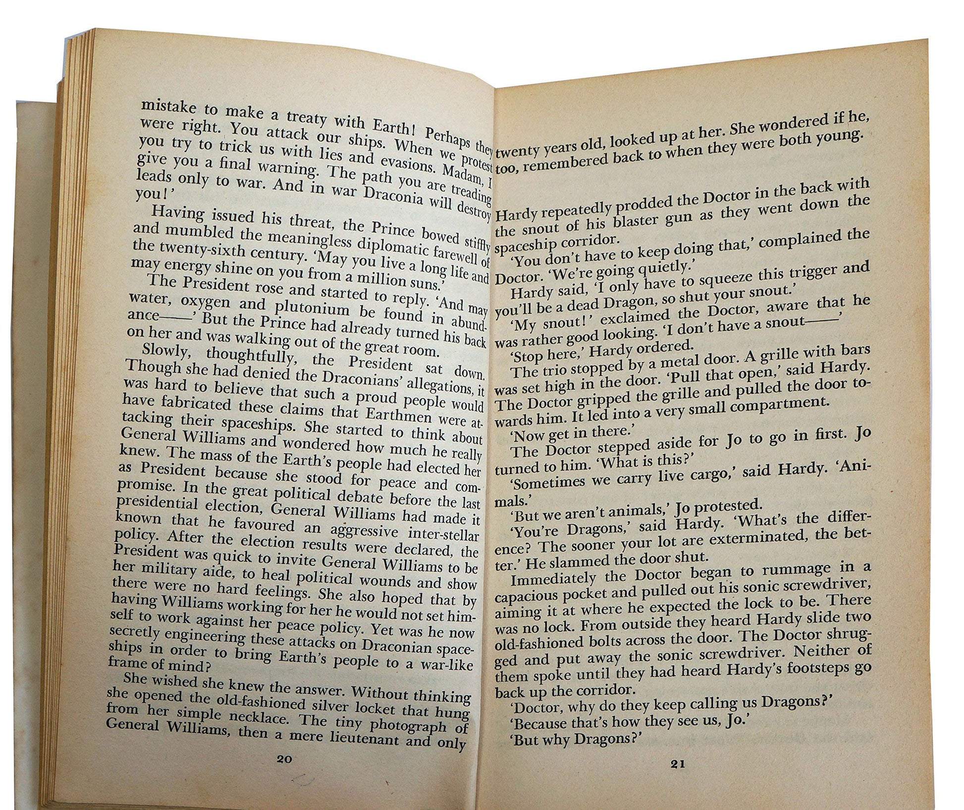 Vintage 1976 Doctor Who And The Space War Target Paperback Novel Book First Edition By Malcombe Hulke - Very Good Condition. Released by Target Books in 1976 with this being the first edition of the paperback book. "Doctor screamed Jo, Look at that thing. Its coming straight for us!" A small black spaceship, about a mile away, was approaching rapidly. It had no lights, no markings. But some instinct told Jo that the tiny craft meant danger. The year is 2540, and two powers loom in the Galaxy - Earth and Draconia. After years of peace, their spaceships are now being mysteriously attacked and cargoes rifled. Each suspects the other and full scale war seems unavoidable. The Doctor, accused of being a Draconian spy, is thrown into prison. And only when the Master appears on the scene do things really begin to move... This fantastic Doctor Who And The Space War Target Paperback Book, is in very very good condition, which is amazing considering it is now 49 years old, the front and back covers are nice clean and bright but does have some very minor wear along the edges. The spline is also in very good condition, again with only very very minor signs of wear on the tips of the edges. Internally the book is in fantastic condition, all 144 pages are present and attached they are clean and bright with no writing or damage on any page just some slight browning of the page edges due to age and the type of paper that was used back in the day. A truly fantastic example of a vintage Dr Who Paperback Book from yesteryear. All orders received before 4.00pm Monday to Fridays are shipped the same day