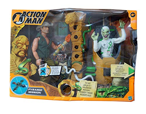 Vintage Hasbro 2002 Action Man AM Pyramid Mission Action Figure & Accessories Set - Brand New Shop Stock Room Find. Released By Hasbro In 2002 as part of their new wave of Action Man toys. This fantastic Action Man Pyramid Mission Adventure Set includes An Action Man Figure dressed in his Tomb Raider Attire including Vest, Trousers, Boots, Hat, Flame Torch and Weapon, plus Gangrene Mummy Figure in his chamber, with pull ring to make him move, plus a wall column with hidden trap, that when pressed, the spikes come out of the wall, plus an assortment of snakes, and an added bonus of a mini Action Man Comic. Brand New Factory Sealed Shop Stock Room Find. Discovered in the store room of a closing down shop with a whole host of other Action Man toys. Mint condition and factory sealed. All Orders Received Before 4.00pm Mondays to Fridays are shipped the same day.