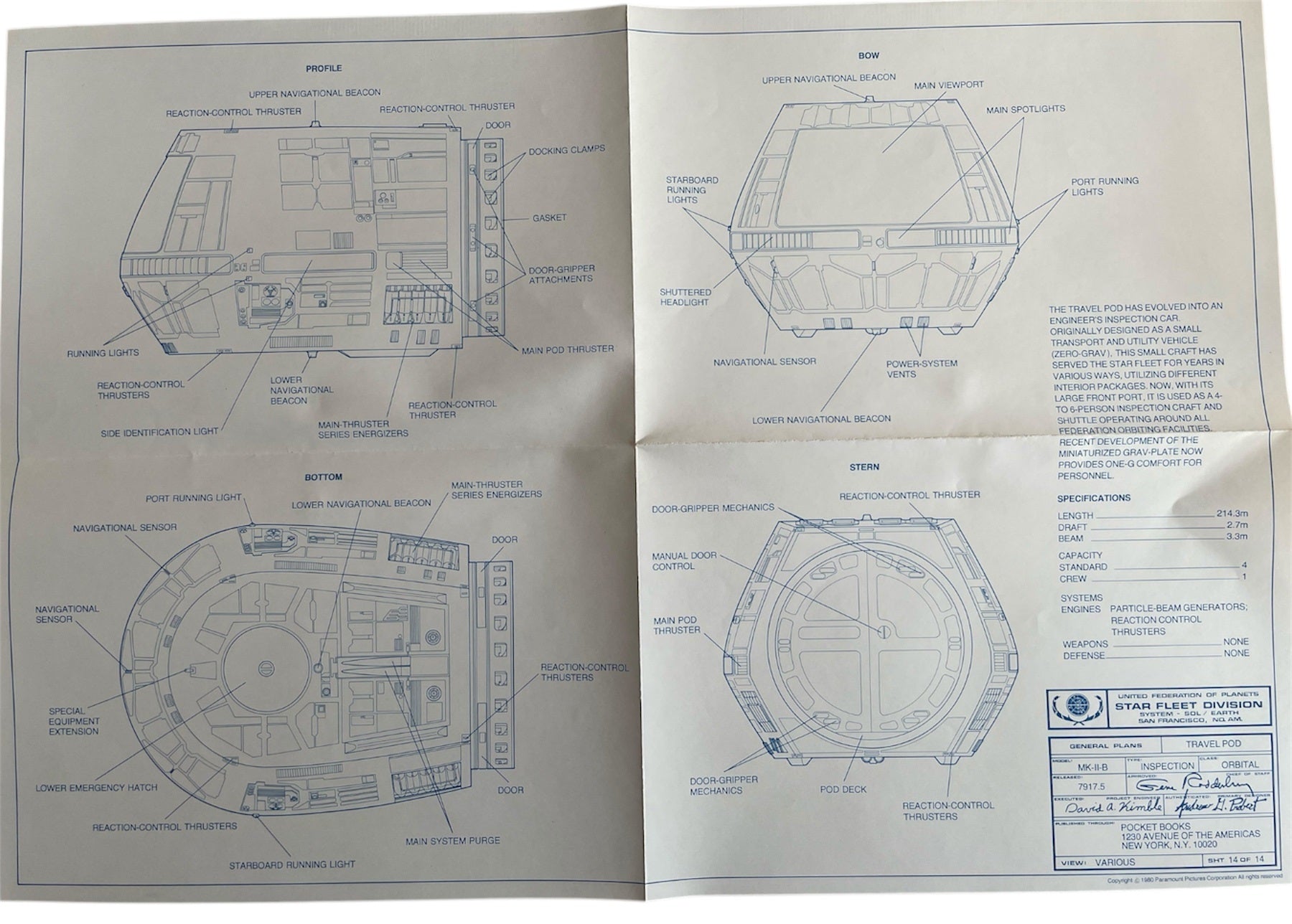 Vintage 1980 Star Trek The Motion Picture 14 Official Blueprints - The Complete Set Of 14 Authentic Blueprints - Former Shop Counter Display Set