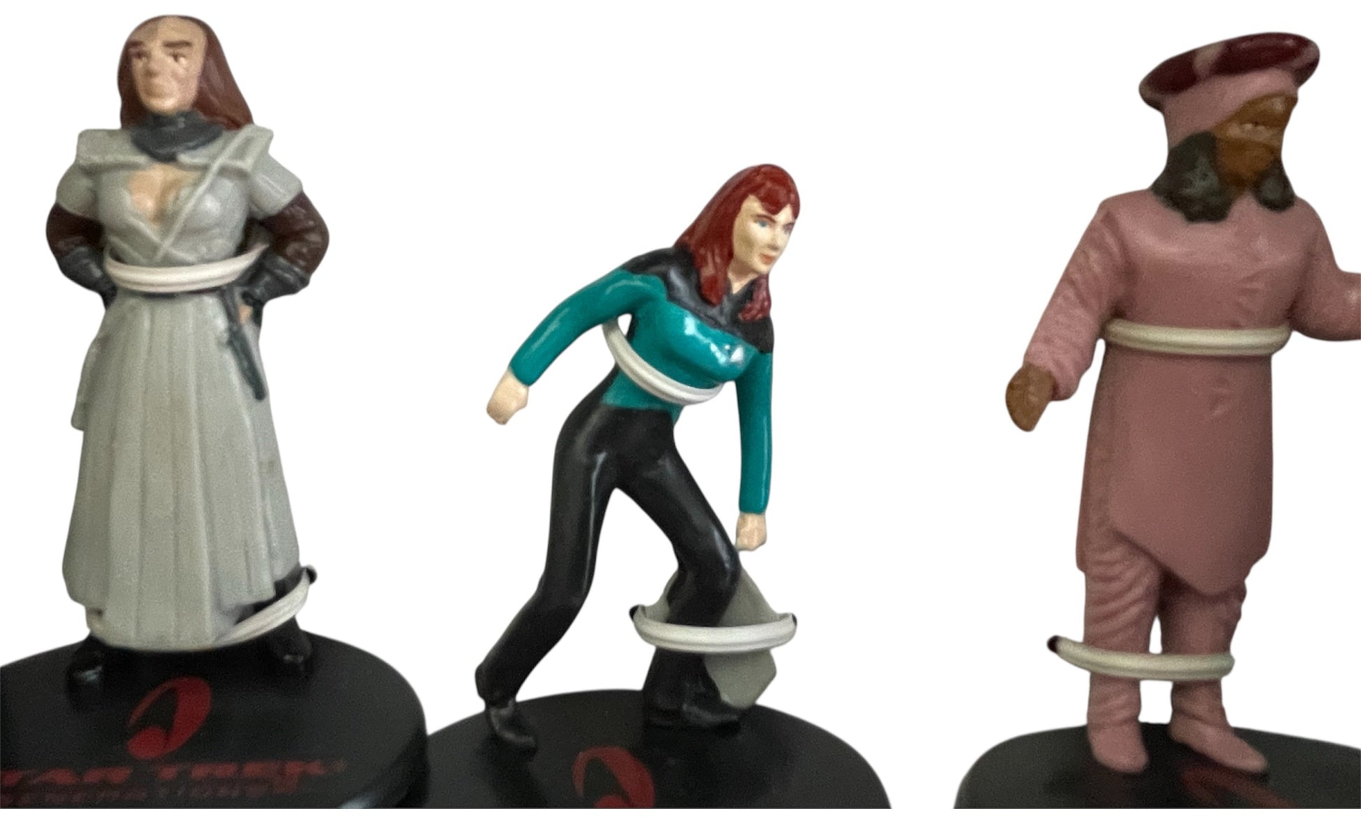 Vintage Applause 1994 Star Trek Generations Six Action Figure Box Set By Applause - Brand New Factory Sealed Shop Stock Room Find. Released by Applause in 1994 as part of their series of Star Trek Generations Action Figure Box Sets. This fantastic action figure box set includes 6 x 3 inch Star Trek Generations figures which includes - Klingon Warrior B'Etor, Doctor Crusher, Guinan, Commander Riker, Doctor Soran and Counselor Troi. Each figure comes mounted on a display stand. Brand New Factory Sealed Shop Stock Room Find. Discovered in the store room of a closed down shop with a whole host of other Star Trek items from a similar era. All orders received before 4.00pm Monday to Fridays are dispatched the same day.