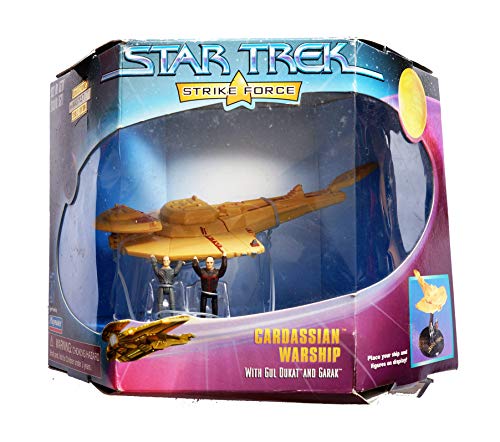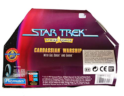 Star Trek Strike Force Cardassian Warship With Gul Dukat and Garak Mini Figure Set. Released by Playmates in 1997 as part of their series of Strike Force Ships and Figures. This fantastic Limited Edition Star Trek Strike Force Cardassian Warship features Opening Bridge Hatch For Figure Placement, Rotating Bridge, Pivoting Tail Section, Display Stand and Gul Dukat and Garak 1 1/2 Inch Figures. Brand New And Factory Sealed Shop Stock Room Find. Discovered in the store room of a closing down shop with a whole host of other play sets from a similar era. Mint condition item, but the box does have some very minor shelf wear on the edges. All Orders Received Before 4.00pm Mondays to Fridays are shipped the same day