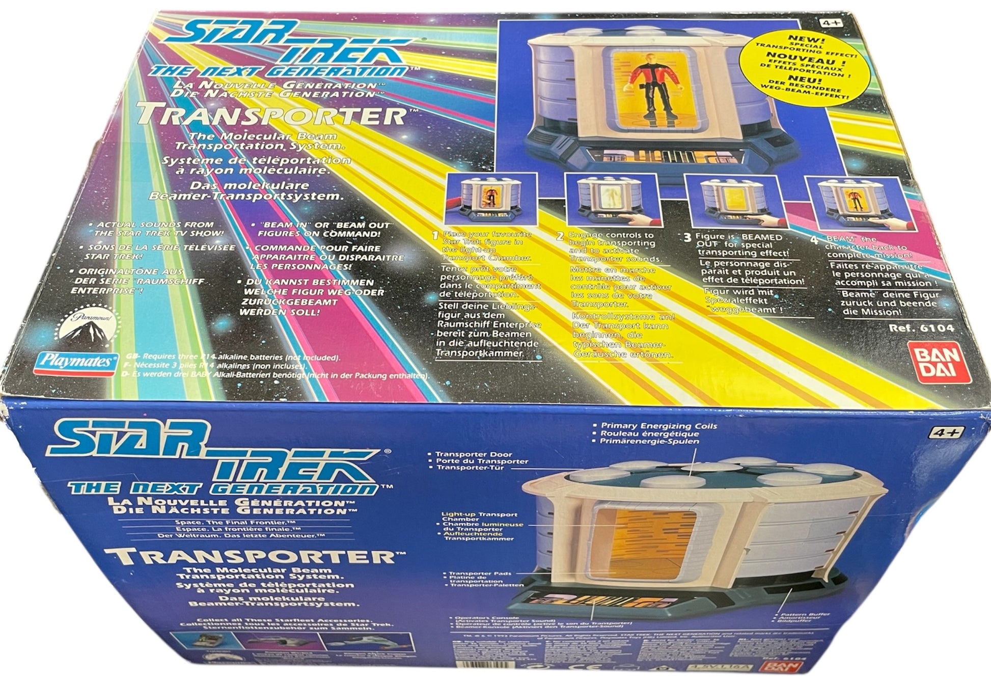 Vintage 1993 Playmates Star Trek The Next Generation Electronic Transporter Chamber Play Set - Brand New Shop Stock Room Find. Released by Playmates in 1993 as part of the Star Trek The Next Generation series of Action Figures, Ships and Play Sets. This fantastic Transporter Chamber - The Molecular Beam Transportation System features - Special Transporting Effect: Beam In or Beam Out. Authentic Transporter Sounds, Light-Up Transporter Chamber, Authentic Operator's Console plus an added bonus of a Technical Blueprint. Brand Shop Stock Room Find. Mint Condition, but the box does have some very minor shelf wear on the corner edges. Discovered in the store room of a closing down shop with a whole host of other play sets from a similar era. All Orders Received Before 4.00pm Mondays to Fridays are shipped the same day