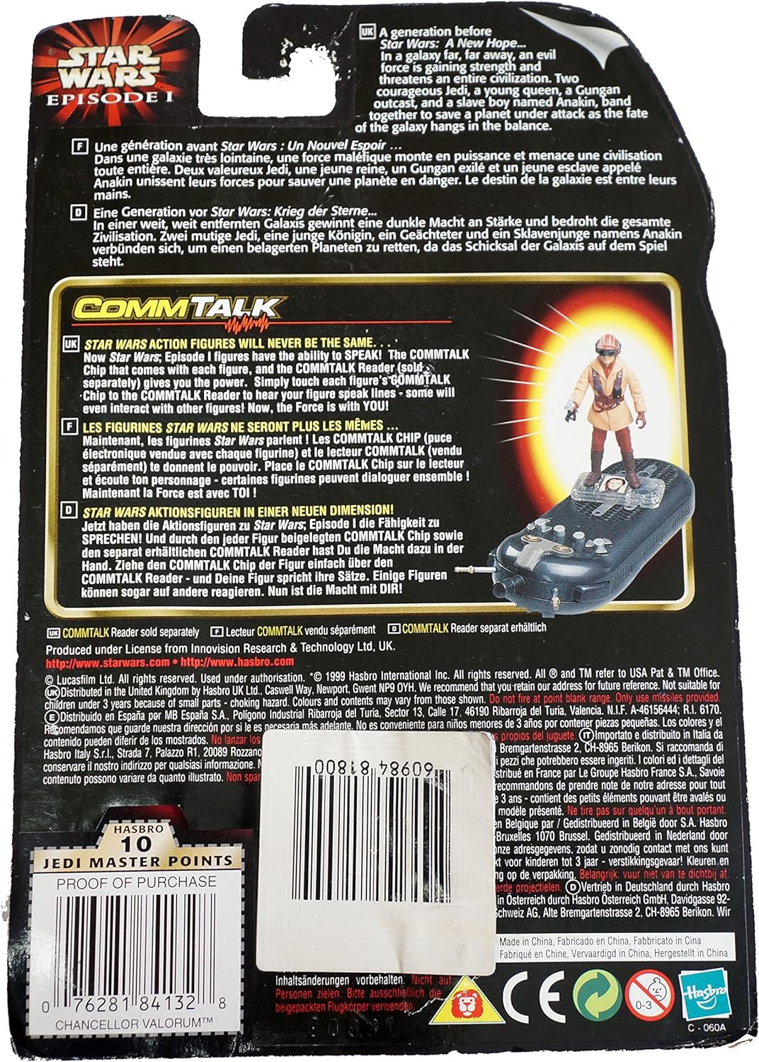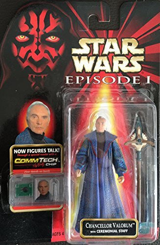 - This fantastic Chancellor Valorum Action figure comes complete with Ceremonial Staff and his own Comm Tech Talk Chip, so you can hear your figures actually talk (Special Reader Required To Hear).