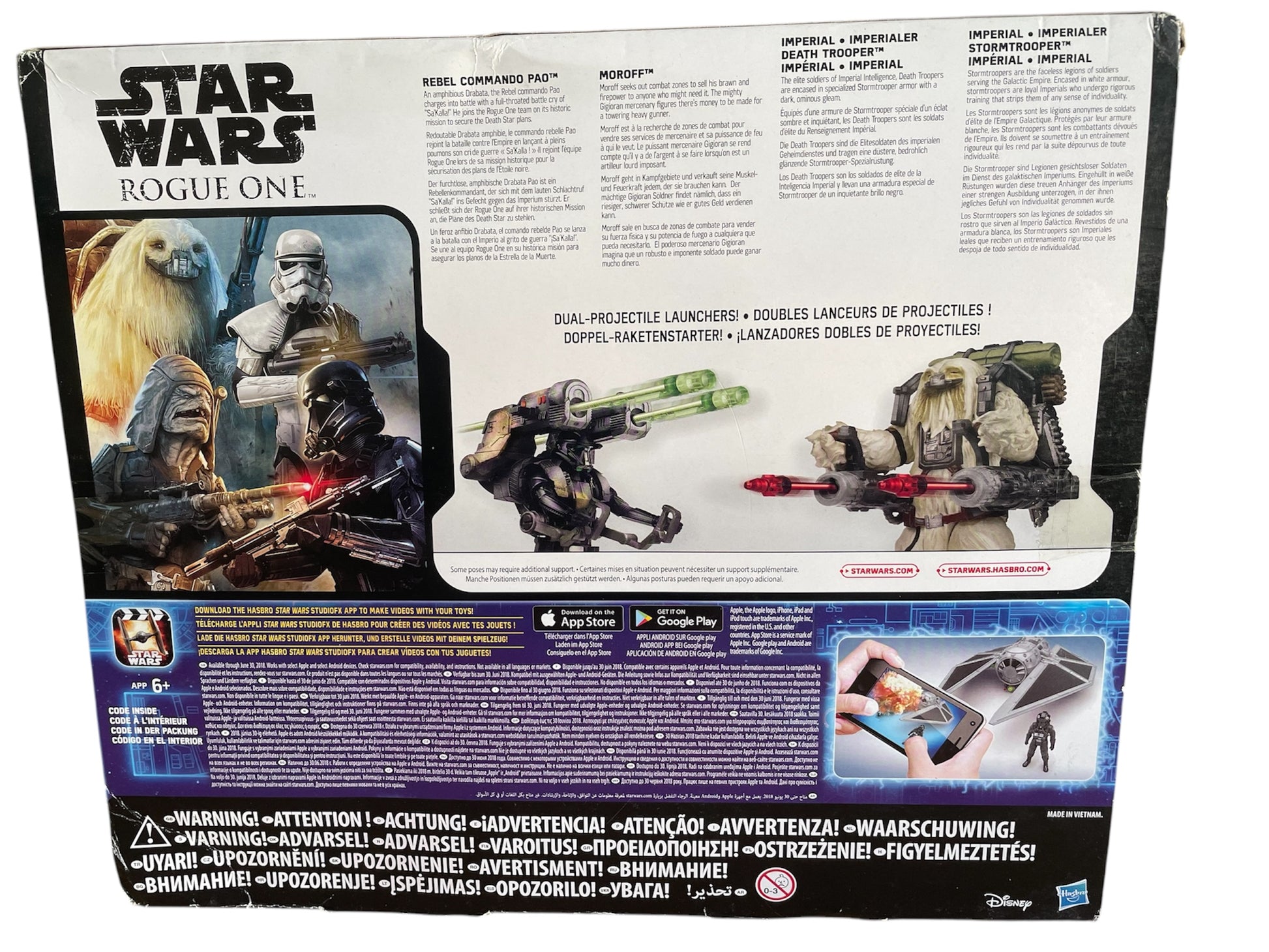 Star Wars Rogue One 2016 Action Figure 4 Pack - Rebel Commando Pao, Moroff, Imperial Death Trooper & Imperial Stormtrooper - Brand New Factory Sealed Shop Find. Released by Hasbro in 2016 as part of their Star Wars Rogue One 4 inch Action Figure Series box sets. This fantastic action figure set includes four figures that featured in the blockbuster movie including - Rebel Commando Pao, Moroff, Imperial Death Trooper and Imperial Stormtrooper plus 2 x Dual Projectile Launchers that fit the figures and really fire the projectiles. Brand New Factory Sealed. All Orders Received Before 4.00pm Monday To Fridays Are Shipped The Same Day