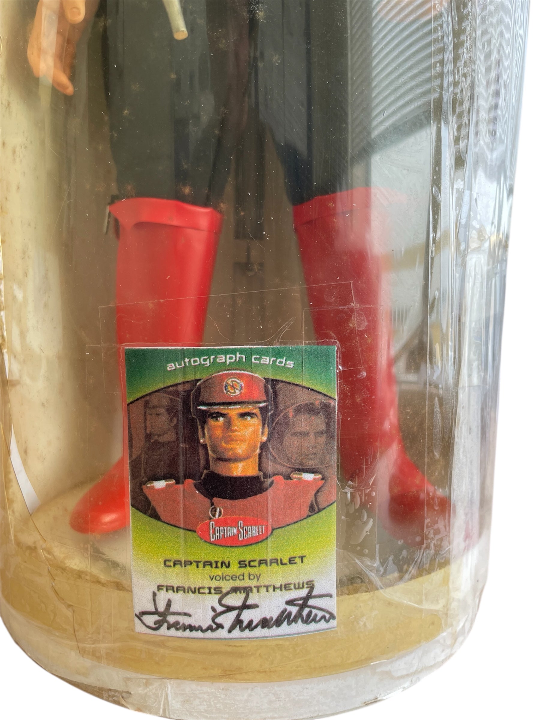 Vintage Gerry Andersons English Classic Porcelains Captain Scarlet 24 Inch Porcelain Doll Collection Officially Authorized By Sylvia Anderson Limited Edition 1996 Release - Fantastic Condition In The Original Tube. Released in 1996 by English Classic Porcelains as part of their Captain Scarlet 24 Inch Porcelain Doll Collection. This fantastic Porcelain 24 Inch Doll of Spectrums No. 1 Agent Captain Scarlett is an officially Licensed product, personally authorized by Captain Scarlets Co-Creator Sylvia Anderson and was limited to only 5000 pieces worldwide. The item is very unique and part of a limited edition, individually hand crafted to the finest detail of the original characters. Standing 24 Inches high and complete with stand and name plaque, and has posable limbs. This item is a former display item that has spent its entire life in a shop display, together with other dolls from the Andersons Collections. The doll is in superb condition, with no damage or wear that is visible, and he is attached to his stand. The tube that the doll came in was modified for display purposes with a section being cut out to view the figure, with plastic sheeting covering the opening. Also has a facsimile of a trading card signed by Francis Matthews who was the voice of Captain Scarlet in the TV series. Sadly we was unable to locate the certificate of authenticity. Still an absolutely wonderful item from 1996. All Orders Received Before 4.00pm Mondays to Fridays are shipped the same day
