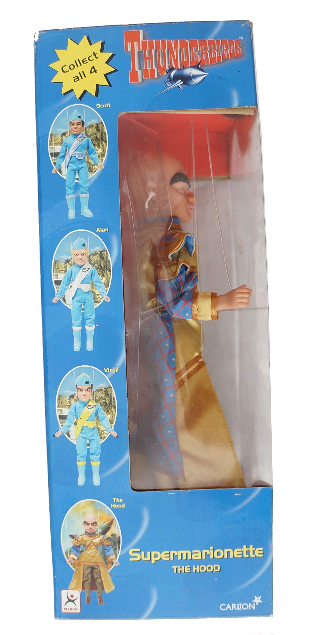 Vintage 1999 Gerry Andersons Thunderbirds Vintage The Hood 12 Inch Supermarionette Pelham String Puppet - Brand New Factory Sealed Shop Stock Room Find. Released in 1999 by Pelham Puppets as part of their Thunderbirds range of Supermarionette Puppet Range. This fantastic Hood Supermarionette stands an impressive 12 inches tall, he is in full Hood outfit, and comes complete with four strings and a string handle to make him walk and move just like in the TV series. The Hood comes with a fantastic Thunderbird 1 and Thunderbird 2 Cardboard Cut Outs. Brand New Shop Stock Room Find. Discovered in the store room of a closing down shop. Mint Condition. All orders received before 4.00pm Monday to Fridays are shipped the same day.