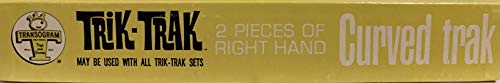 Vintage Transogram 1960 Trik-Trak 2 x Pieces Of Right Hand Curved Trak For Additional Fun With Trik Track Sets - Complete And In The Original Box. Released by Transogram in 1960 as part of their series of Trik-Trak Play Sets and Accessories. This fantastic Trik-Trak Accessory Set of 2 Pieces of Right Hand Curved Trak adds additional fun to any Trik-Trak Play Sets. Trik-Trak is beautiful in its simplicity, and an endless variety of layouts were possible, limited only by imagination and the number of plastic corners you had. Battery operated 6¼ inch plastic racing cars whizzed over the floor following any course that you set up, guided by pieces of side-walled disconnected track (corners, bridges and such). A course could be set up all through the house and the racing car would follow regardless of size or shape with no electrical connections. You could even change the course while the car was in motion. The basic set included 7 curved and 2 straight tracks with “clip-on scenic backdrops” and one car. This set is the perfect add on to your main set. Fantastic Condition very rare vintage 2 piece trak set, which looks almost unused. Comes in the original box which is also in amazing condition, with only the smallest signs of any wear on the tips of the corner edges. A truly fantastic find of a vintage Trik-Trak Accessory Set from over 59 years ago. All orders received before 4.00pm Monday to Fridays are shipped the same day.