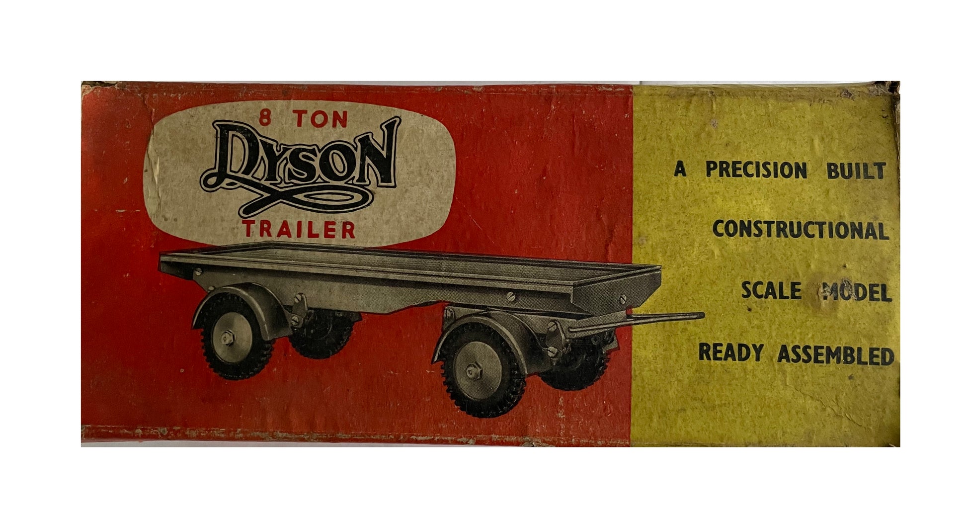 Vintage 1950's Shackleton Model - 8 Ton Dyson Trailer Precision Build Constructional Scale Model - Fantastic Condition - In The Original Box. Released by Shackletons in the 1950's as part of their series of constructional Die-cast replica model vehicles. This fantastic Shackleton Model 8 Ton Dyson Trailer is finished in grey-blue & red with a complete ‘Dyson’ transfer on one end, and measures 8 inches long by 3 1/2 wide by 2 1/2 inches tall, it is fully assembled with mini nuts and bolts which are designed to be taken apart, dismantled and re assembled. The model is in fantastic condition, it is fully complete including the towing hook, and shows very little signs of any wear, other than some very minor mars along the side. Comes in the original Shackleton box from the 1950's which is in very good condition, but does have some shelf wear which is mainly on the edges. A truly fantastic example of a very very rare highly sort after collectors model from 70 years ago. All Orders Received Before 4.00pm Mondays to Fridays are shipped the same day