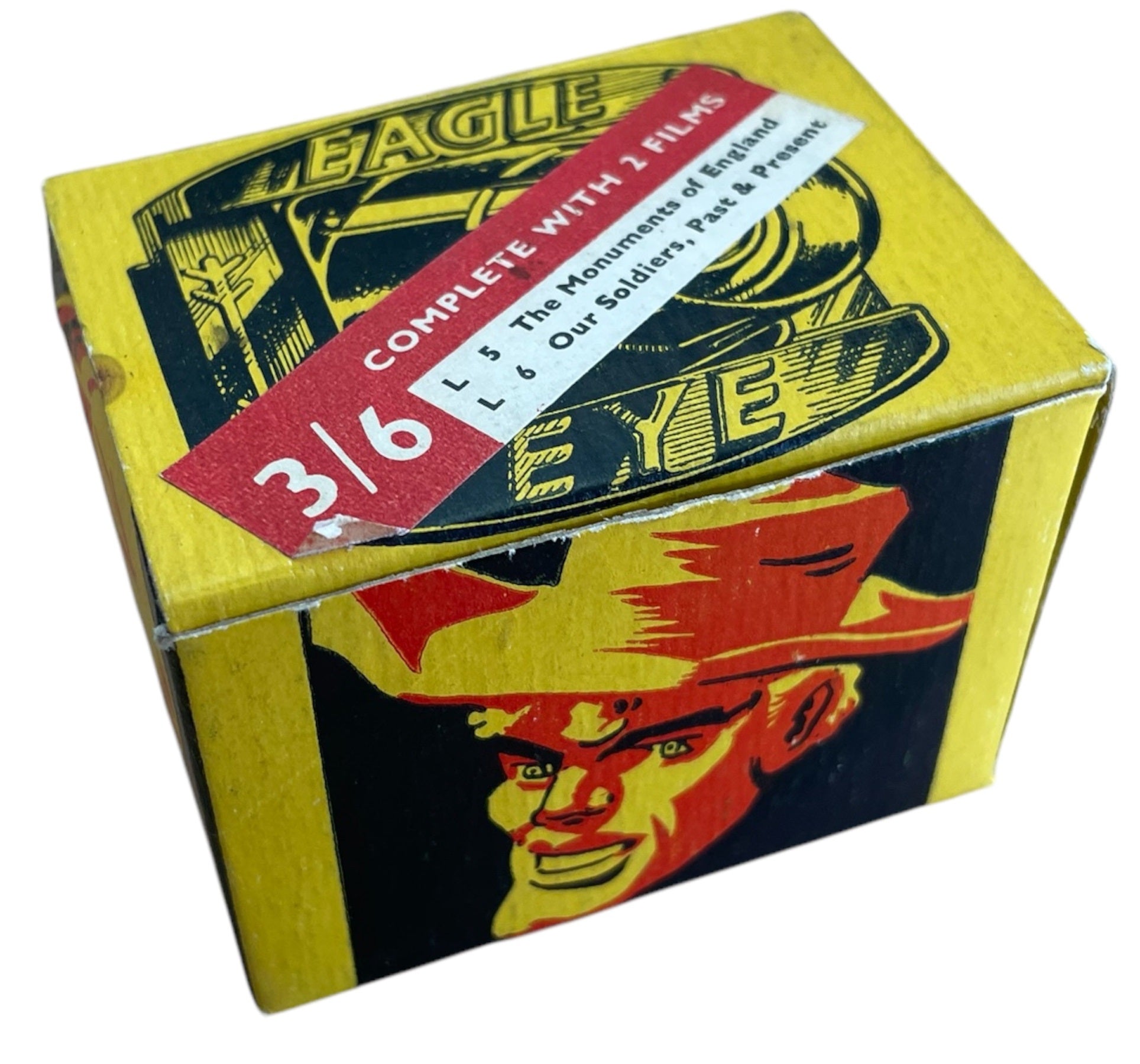 Vintage 1950's The Eagle Comics Dan Dare - Eagle Eye View Finder - With Film Strip - In The Original Box. Released by Martin Lucas in the 1950's as part of their series of Dan Dare toys, and was originally given away in the Eagle Comic. This fantastic Eagle Comics Dan Dare Eagle Eye View Finder Film Viewer is finished in black plastic and measures 5cms wide by 4 1/2cms tall by 4 cms deep. The viewer features an adjustable viewing eye, that slides up and down to view multiple rows of strips. Simply insert the film strip into the viewer, hold the eye piece as close to your eye as possible, and pull the strip through to view all the images, then slide down the eyepiece to view the next row. The Eagle Eye View Finder is in very good condition over all, which is amazing, especially when you consider that it is now over 65 years old, it is in full working condition and shows very little signs of any use, if any. Comes in the original box, which is in very good condition, it is still bright and colourful with only some very very minor signs of any wear, which is mainly on the tips of the edges. A truly wonderful ultra rare vintage Dan Dare Eagle Eye View Finder from yesteryear. All Orders Received Before 4.00pm Monday To Fridays Are Shipped The same Day.