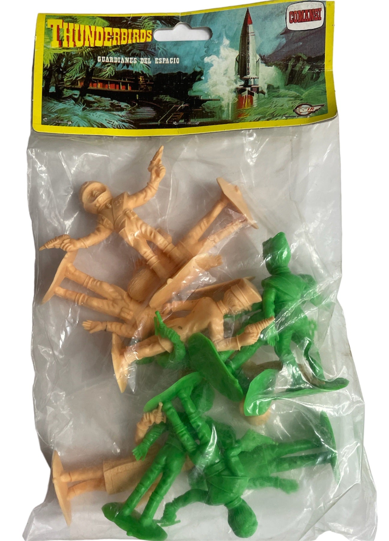 Vintage 1960's Gerry Andersons Thunderbirds Comansi International Rescue Plastic Figure Set Green/Baige Guardianes Del Espacio New In Sealed Bag - Shop Stock Room Find