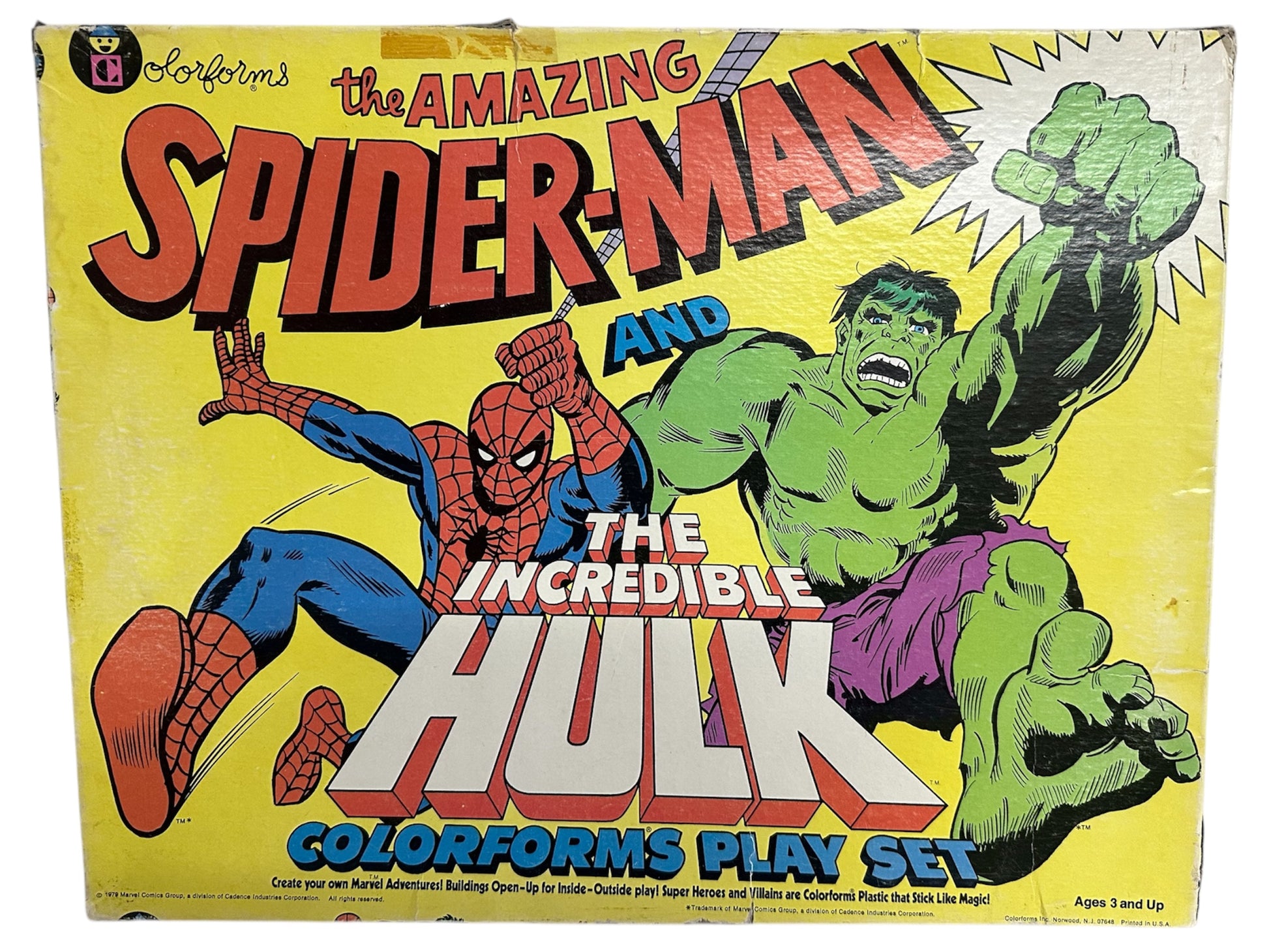 Vintage 1979 Marvels Colorforms Play Set - The Amazing Spiderman And The Incredible Hulk - Very Good Condition In The Original Box