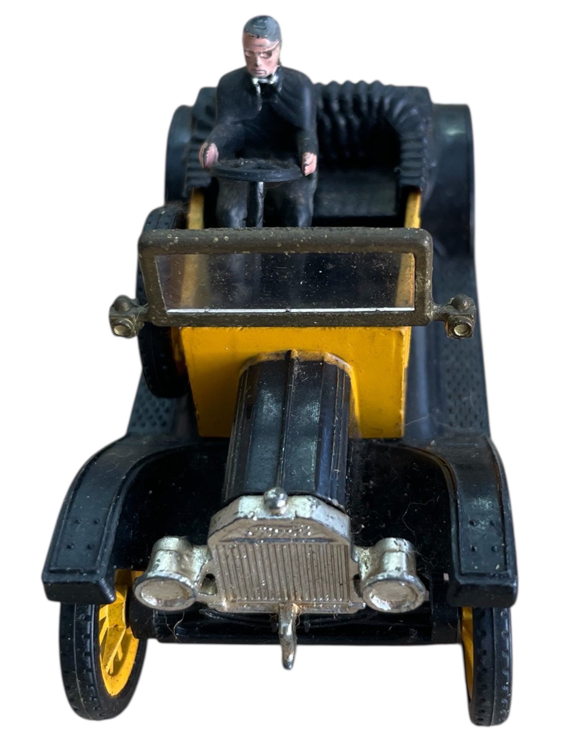Vintage 1969 Gerry Andersons The Secret Service Dinky Toys Number 109 Gabriel Model T Ford Car Diecast Replica Vehicle - With Display Plinth & Original Box. Released by Dinky Toys in 1969, as part of there Gerry Andersons Range. of diecast model vehicles This fantastic Dinky 109 Father Unwins Gabriel Model T Ford Car is highly detailed and sports a black and yellow diecast body with black and silver trim and measures 8cms long by 4cms wide by 5cms tall and the features include - Brass lamps And Radiator, Authentic Spoked Wheels, Father Unwin Figure Driving The Vehicle, and Free Rolling Wheels. The Gabriel Model T Ford Car is in nr mint condition, which is amazing, especially when you consider it is now over 56 years old, and shows very little signs of any marks at all and is in perfect working order. Comes with the original cardboard display stand, which is also in very good condition, and he outer box which is also in very good solid condition, with only minor signs of wear which are mainly along the edges, A truly fantastic example of a very old Dinky Toy in fantastic condition from yesteryear. All orders received before 4.00pm Monday to Fridays are shipped the same day