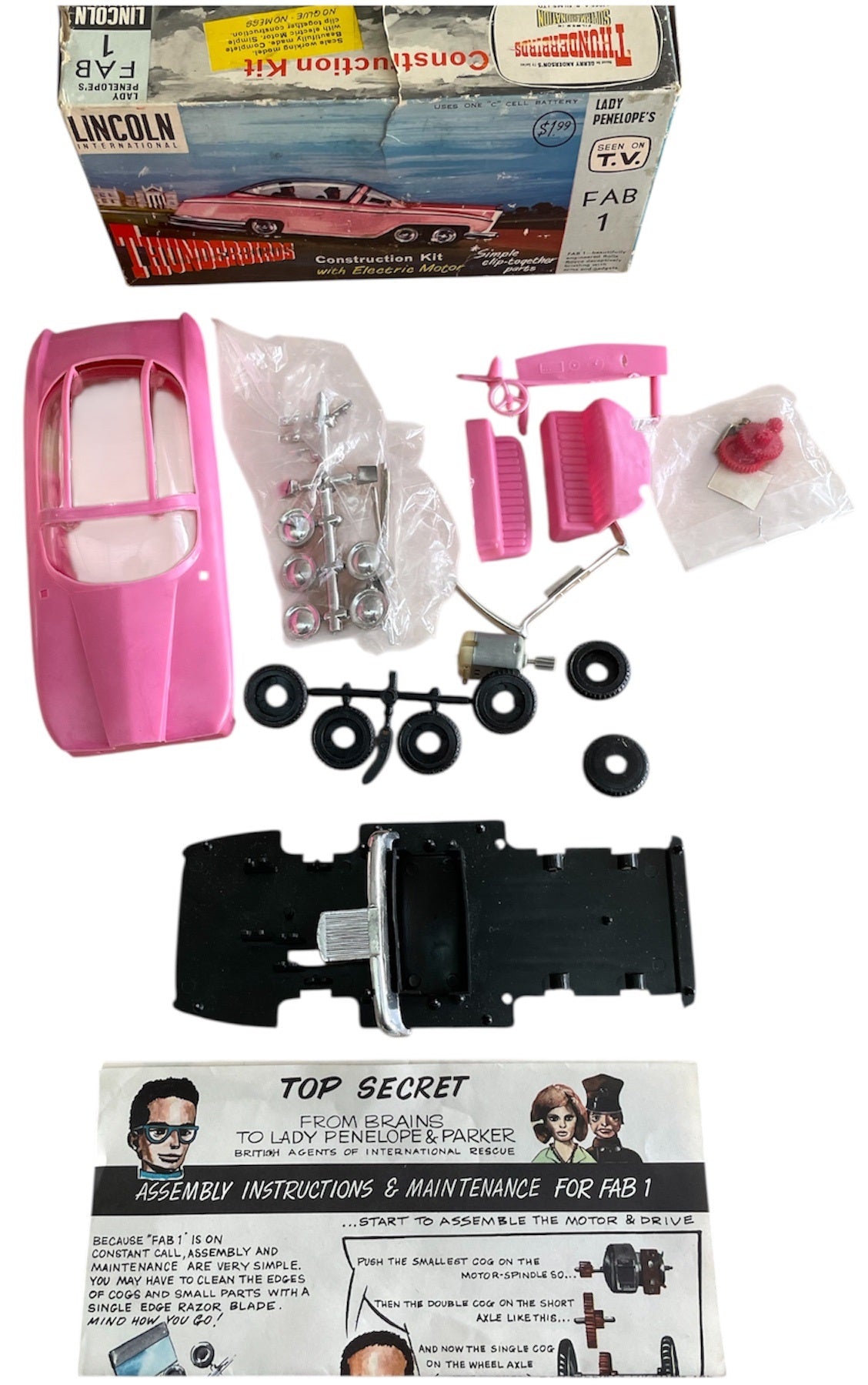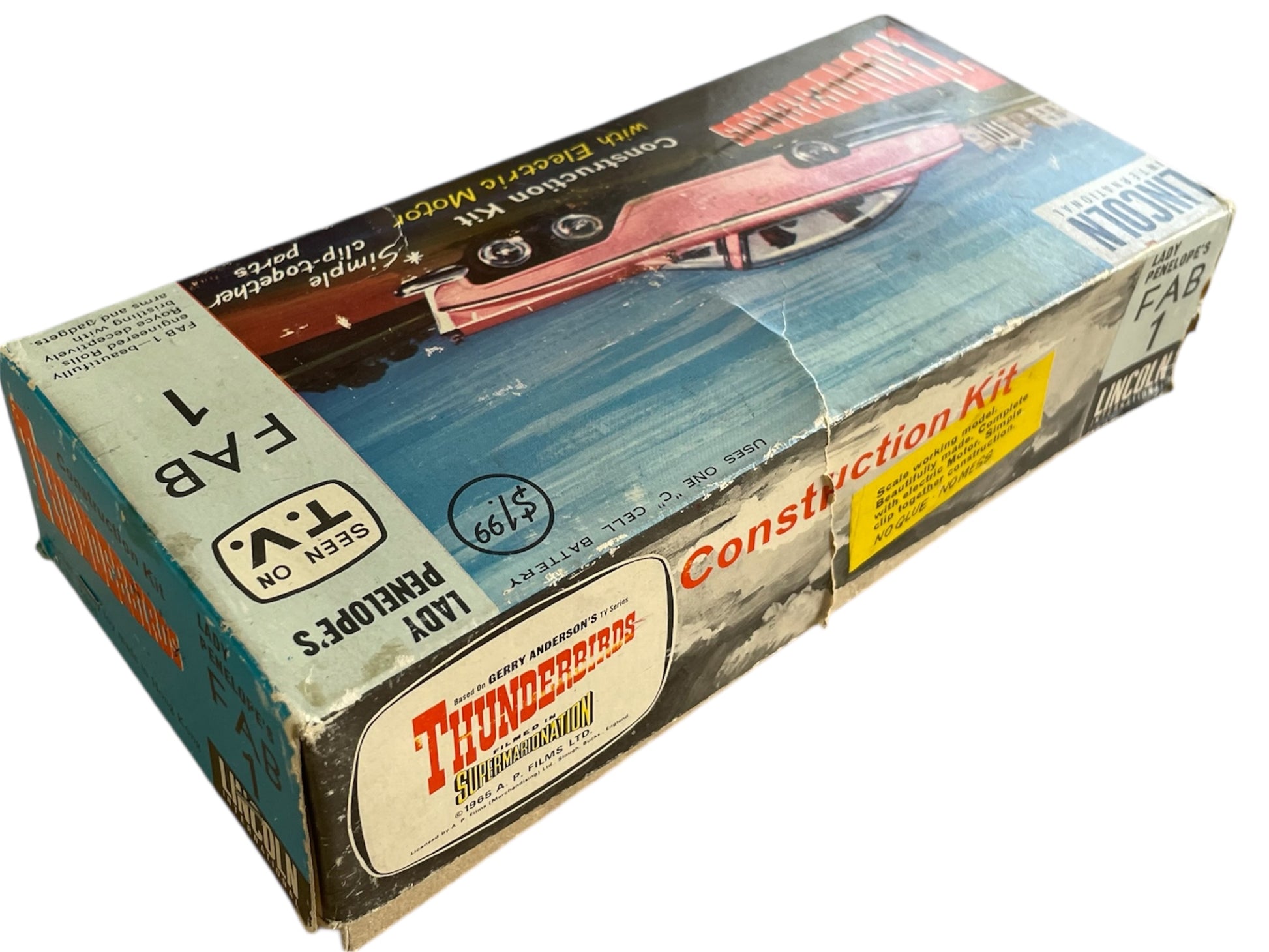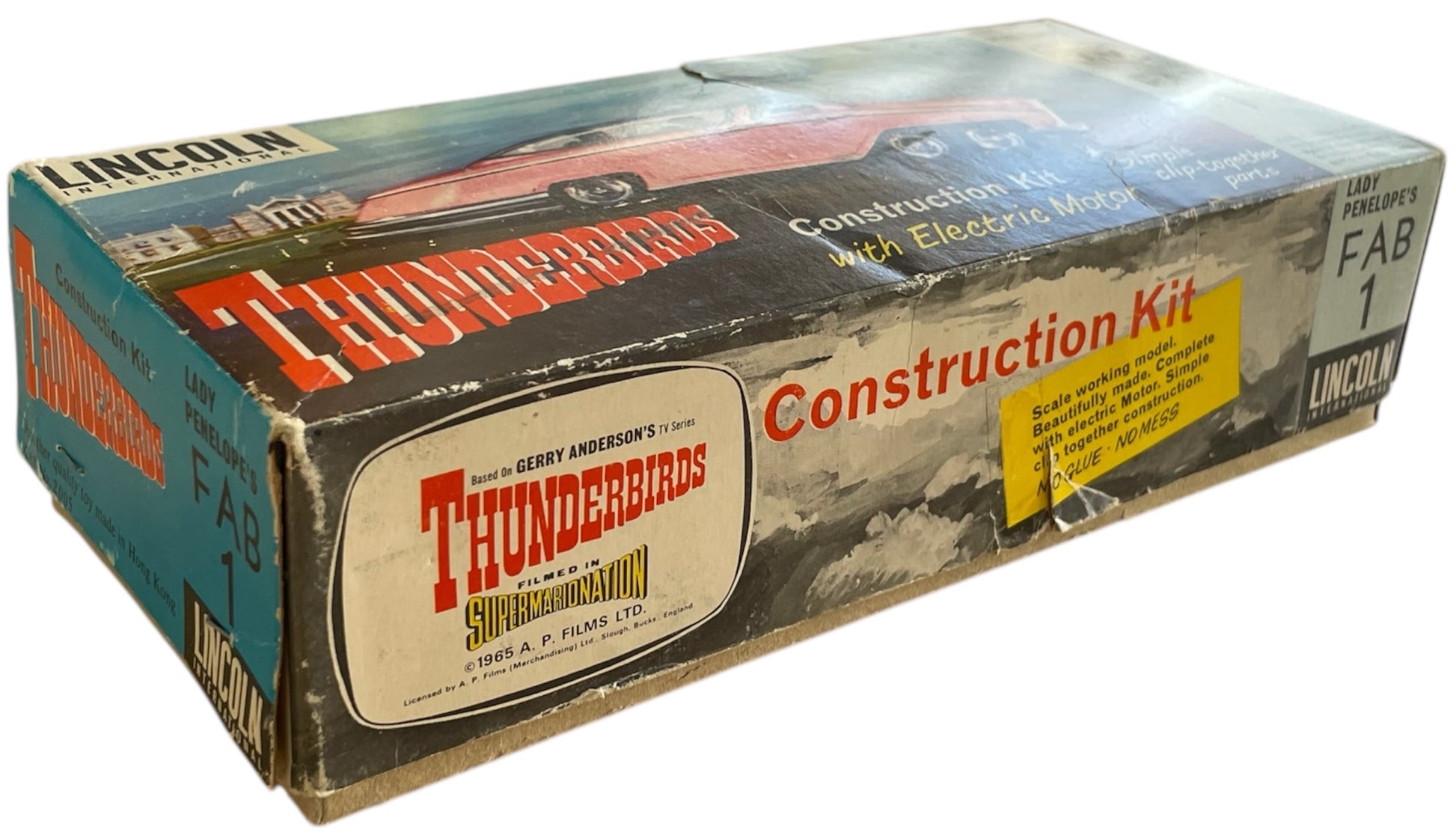 Vintage 1965 Lincoln International - Gerry Andersons Thunderbirds FAB 1 Snap Together Construction Kit With Electric Motor - Unsold Shop Stock - Mint Condition In The Box. Released by Lincoln International in 1965 as part of their series of Thunderbirds Snap Together Construction Kits With Electric Motors. This Fantastic Thunderbirds FAB 1 construction kit is a scale model of Lady Penelope's Pink Rolls Royce as seen in the original 1960's television series, it is beautifully made and highly detailed clip together construction complete with electric motor. The model measures over 8 inches long when fully assembled, and does not require any glue, so no mess. Former Unsold Shop Stock From A closed Down Toy And Comic Book Shop. The set is fully complete and in mint condition, including the instruction sheet and comes in the original box, which is also in fantastic condition, but does have some minor signs of shelf wear, but is still clean, colourful and displays fabulously. A truly fantastic find and ideal for the true Thunderbirds collector. All orders received before 4.00pm Monday to Fridays are shipped the same day.