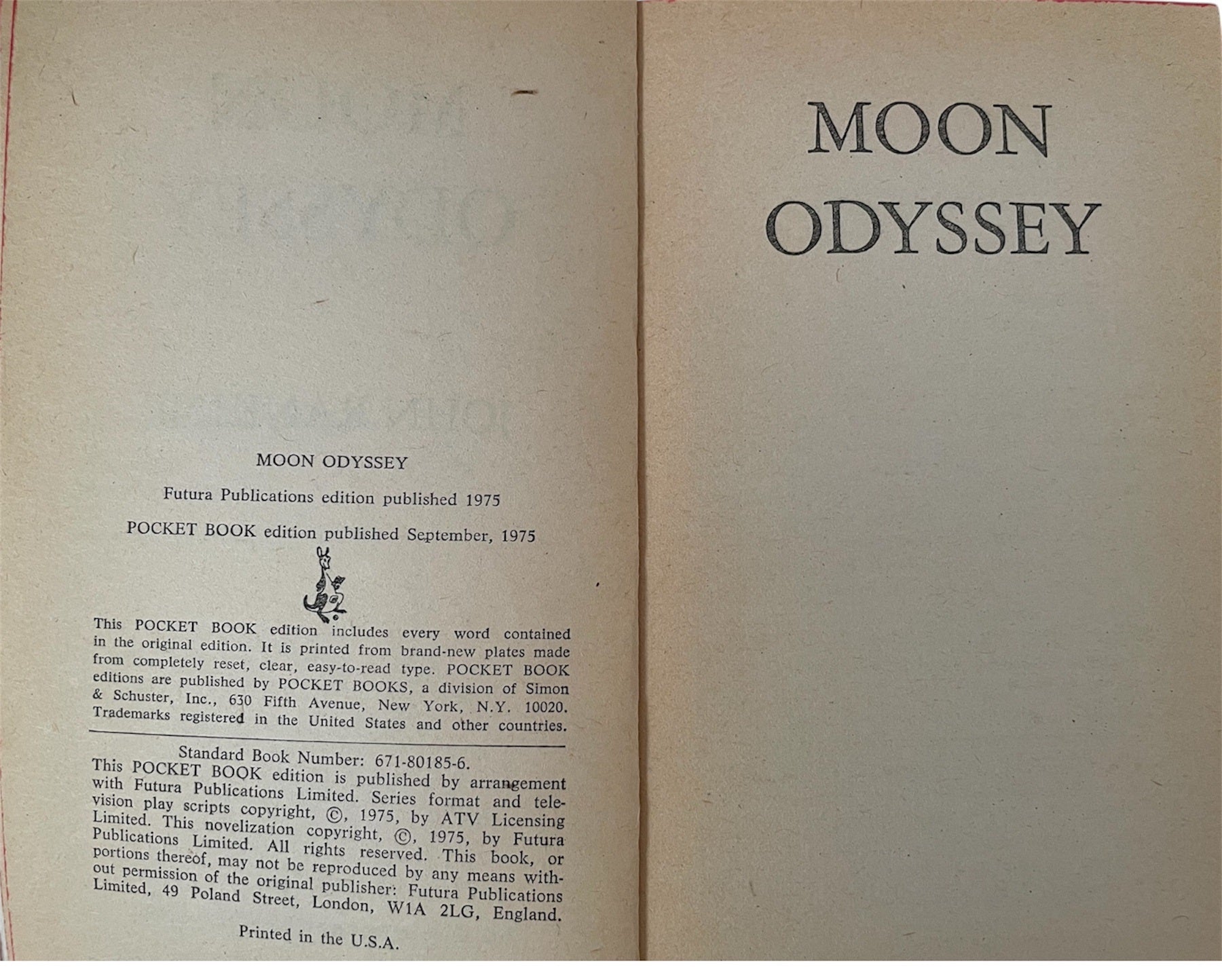 Vintage Pocket Books 1975 Gerry Andersons Space 1999 Paperback Book - Moon Odyssey By John Rankine - Based On The TV Series.