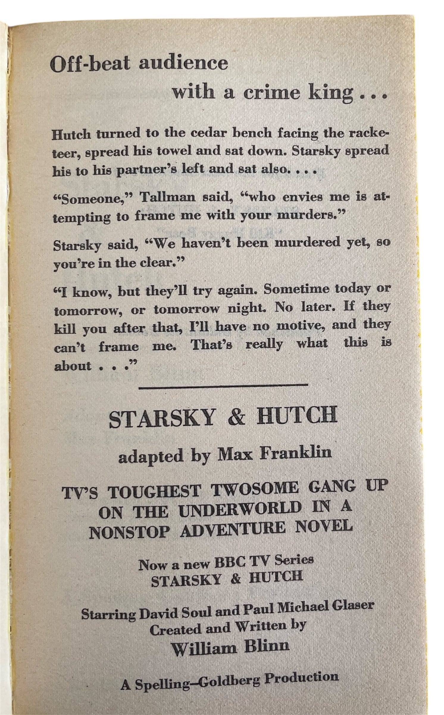 Vintage 1976 Starsky And Hutch No. 1 Paperback Book - Based On The Hit TV Series - Near Mint Condition - Ex Shop Stock