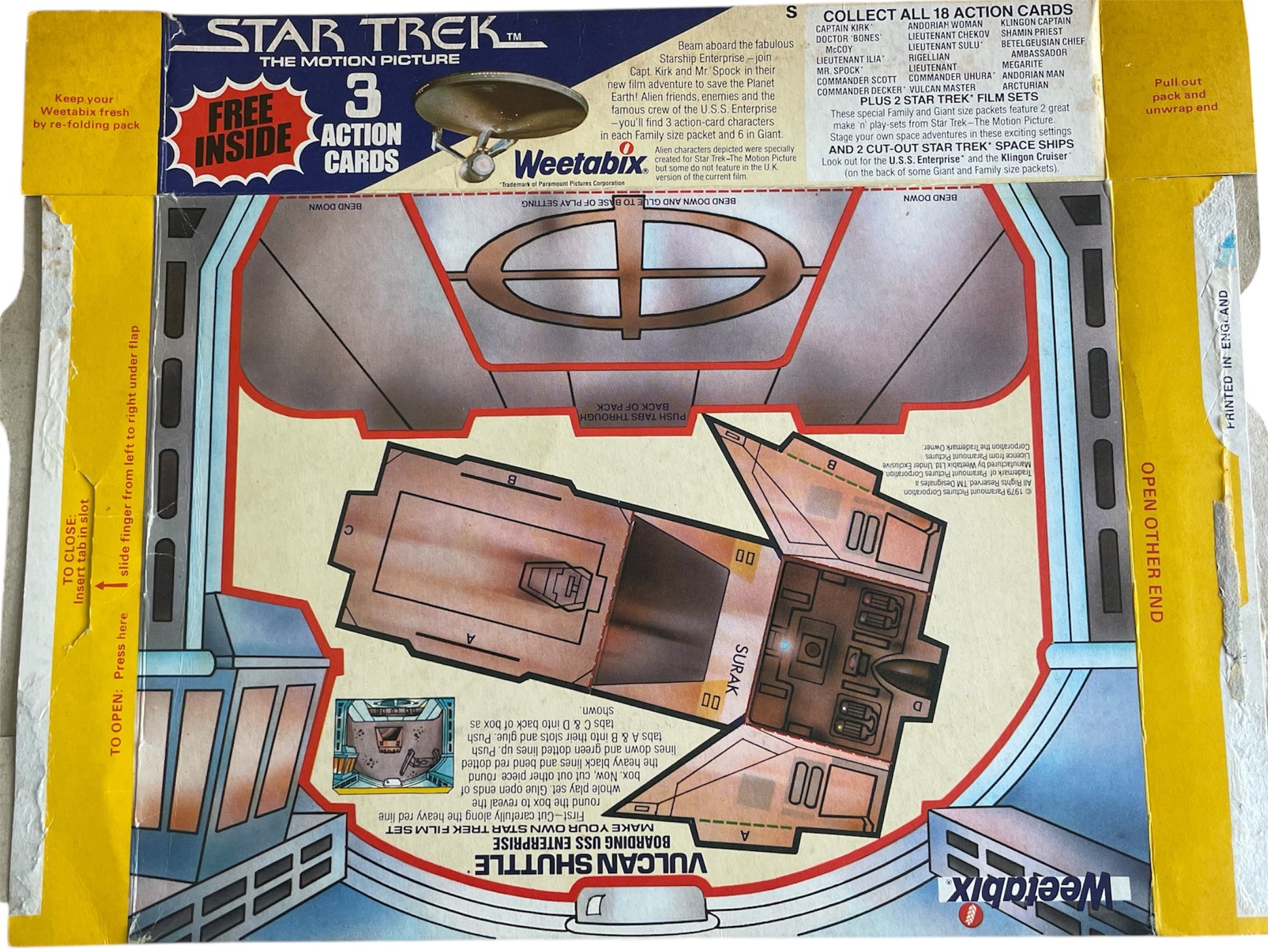 Vintage 1979 Star Trek The Motion Picture Weetabix Breakfast Cereal Box - Vulcan Shuttle With Three Free Figure Cards - Unused And Uncut - Ex Shop Stock