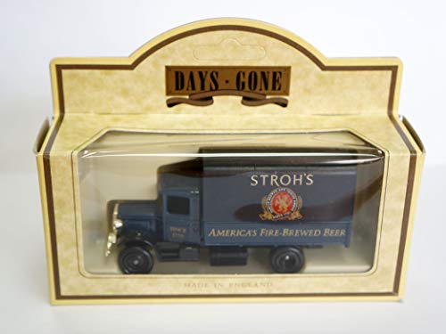 Vintage 1986 Lledo Models Of Days Gone 1934 Mac Canvas Back Strohs Fire Brewed Beer Diecast Replica Model Vehicle - New In Box - Shop Stock Room Find. Released by Lledo in 1986 as part of their Models Of Days Gone Collection. This fantastic diecast model features the 1934 Mac Canvas Back Truck in a scale of 1:76, the body of the vehicle is in Black with a Black Canvas Back and Black & Gold Trim, and features the Strohs Beer Logo of the time on the sides, and measures 95mm long by 35mm wide by 50mm high. Comes in the original Models Of Days Gone Window Box. Brand New Shop Stock Room Find. Discovered in the store room of a closing down shop with a whole host of other Lledo Die-casts from a similar era. All orders received before 4.00pm Monday to Fridays are shipped the same day