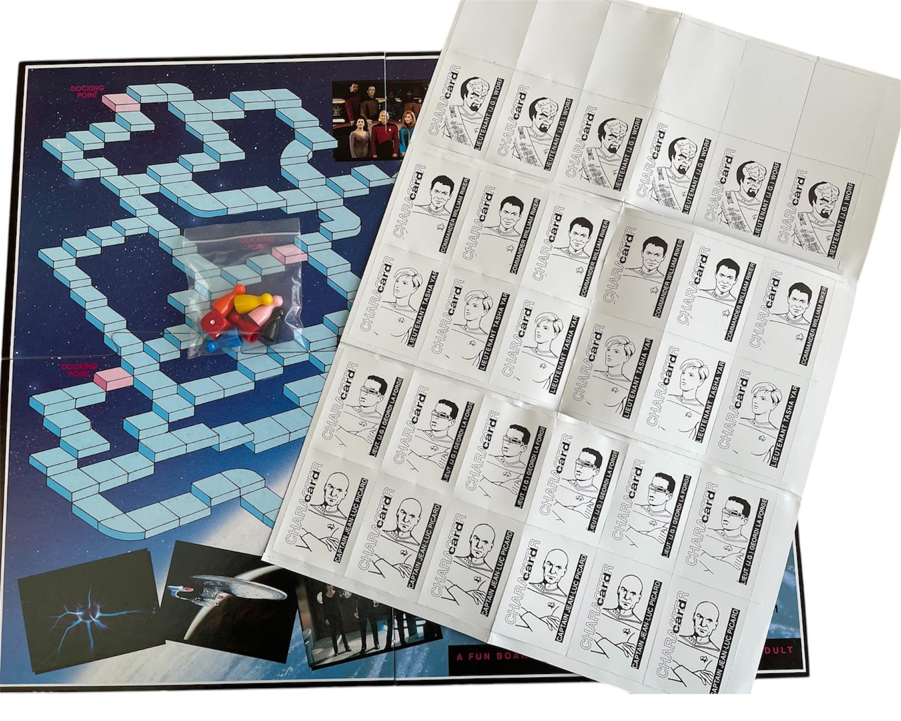 Vintage 1992 Star Trek The Next Generation - The Board Game - Brand New Shop Stock Room Find. Released in 1992 by BMI Ltd as part of their series of TV tie in Board Games. This fantastic Star Trek The Next Generation Board Game sees you jump on board the USS Enterprise and join in the hunt for your Star Trek colleagues: Captain Jean-Luc Picard, Commander William Riker, Lieutenant Geordi La Forge, Lieutenant Tasha Yar and Lieutenant Worf in a game that is out of this world. Your mission is to graduate from Cadet College as a Starship Captain and to do this you have to take your final test - on your own.....in Outer Space. You will find Space a great challenge and your competitors may well intercept your mission. Only luck, skill and determination will ensure you chart your own success. Brand New Shop Stock Room Find. Discovered in the store room of a closed down shop with a whole host of other Trek items from a similar era. All orders received before 4.00pm Monday to Fridays are shipped the same day