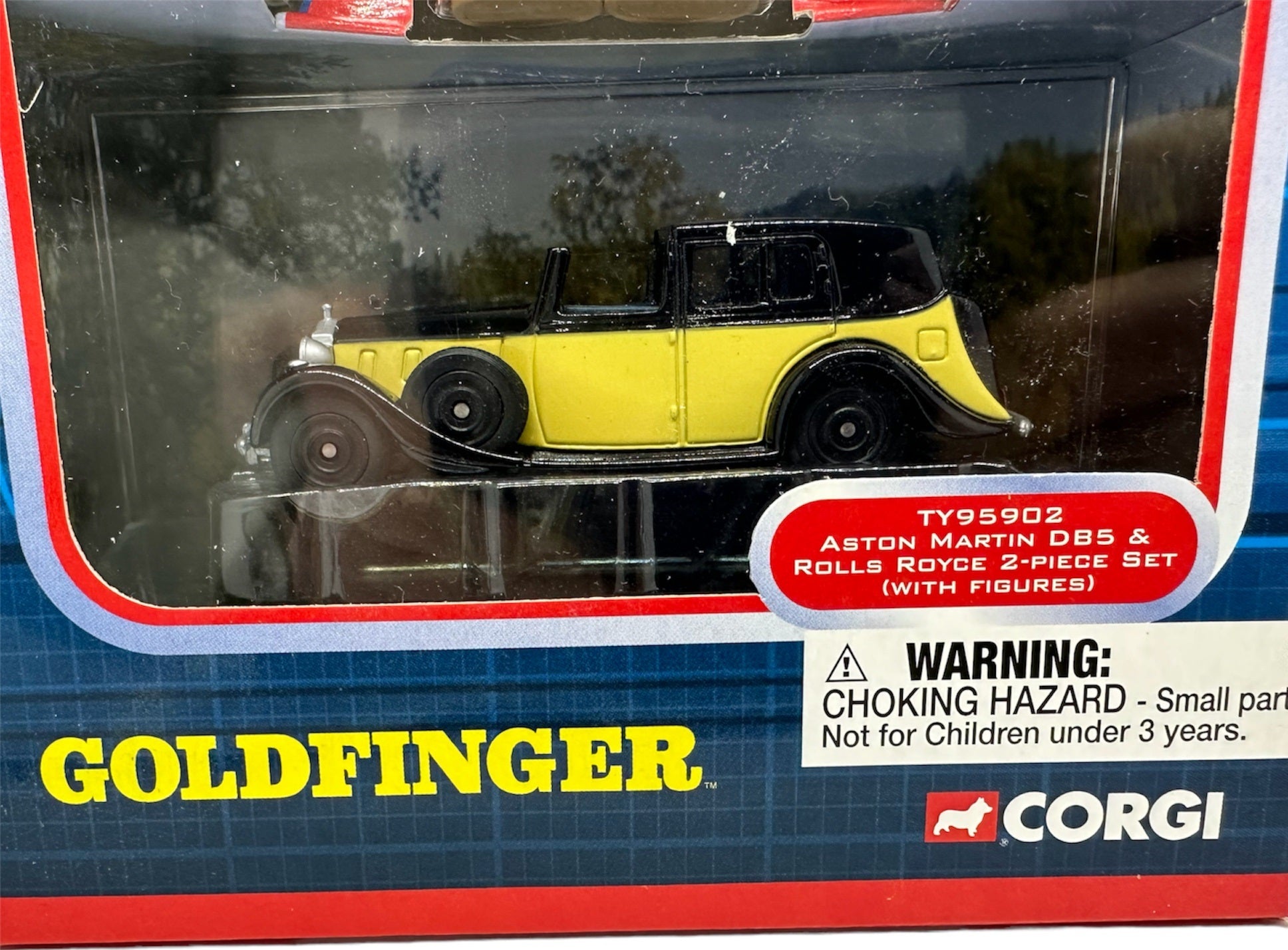 Vintage 2003 Corgi James Bond Goldfinger Set Of 2 1/50 Scale Die-cast Model Vehicles - The Aston Martin DB5 & The Rolls Royce SeDance De Ville - Plus 2 Hand Painted Figures - Set No. TY95902 - Shop Stock Room Find
