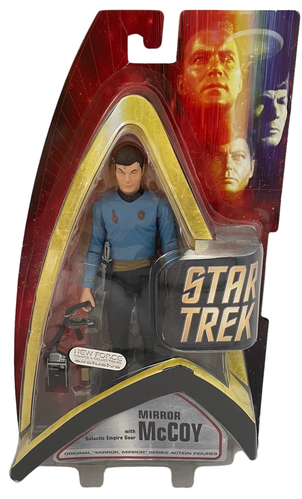 Vintage Art Asylum 2006 Star Trek The Original Series Mirror McCoy Action Figure - Brand New Factory Sealed Shop Stock Room Find. Released by Art Asylum in 2006 as part of their Star Trek The Original Series Mirror Universe Action Figures. This fantastic Mirror McCoy Action figure stands a massive 7 inches tall, he is highly detailed with multiple points of articulation and incredible features, he is dressed in his Blue Mirror Shirt with black trousers and black boots and comes complete with Galactic Empire Gear including Type I Phaser, Tricorder, Communicator And Dagger. Brand New And Factory Sealed Shop Stock Room Find. Discovered in the store room of a closing down shop with a whole host of other Star Trek items from a similar era.