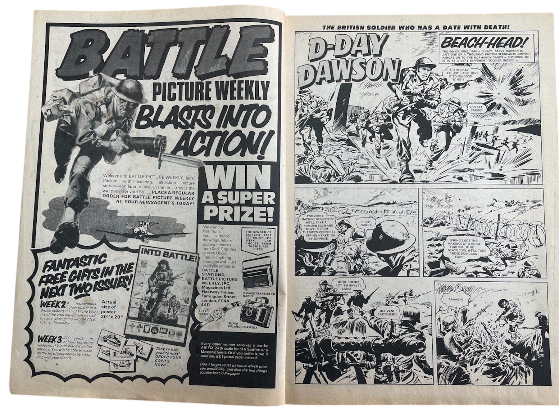 Vintage 1975 Battle Picture Weekly Boys Comic Issue No. 1 - The Fantastic First Issue With Free World War II Combat Stickers Gift - Former Shop Stock