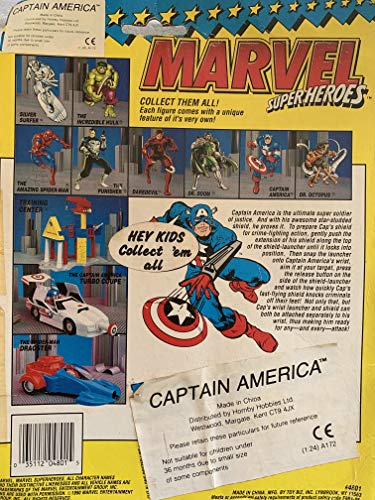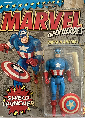 Vintage Toy Biz 1993 Marvel Comics Super Heroes Captain America Action Figure. Released by Toy Biz in 1993 as part of their Marvel Super Heroes Series of action figures. This fantastic Captain America Action figure stands 5 inches tall and features Shield Throwing Action. Shop Stock Room Find. Discovered in the store room of a closing down shop. Comes on the original card, which is in good condition, but does have some minor wear along the edges, and a paper tear at the top where a sticker has been removed, and at some point in its life the bubble has started to lift, but this has been neatly repaired with clear tape. All Orders Received Before 4.00pm Mondays to Fridays are shipped the same day