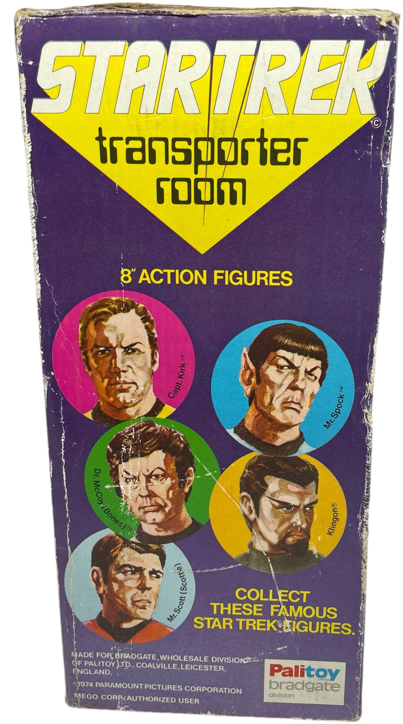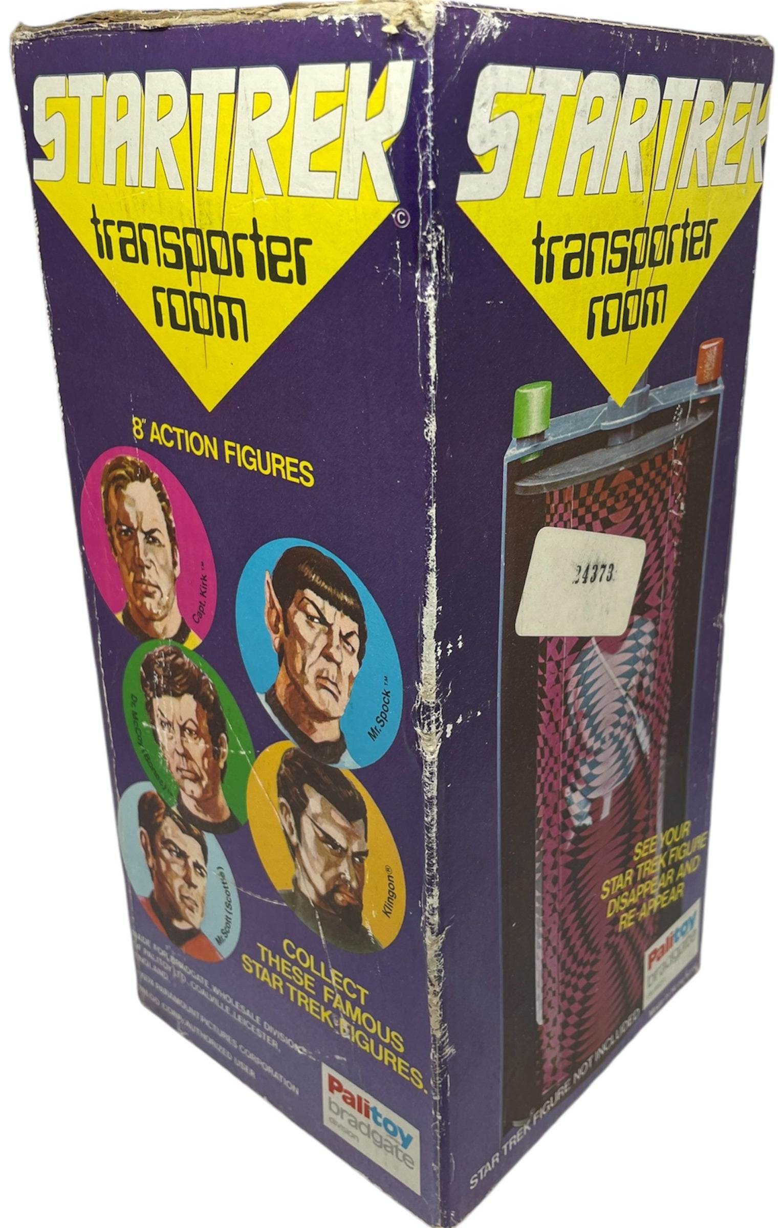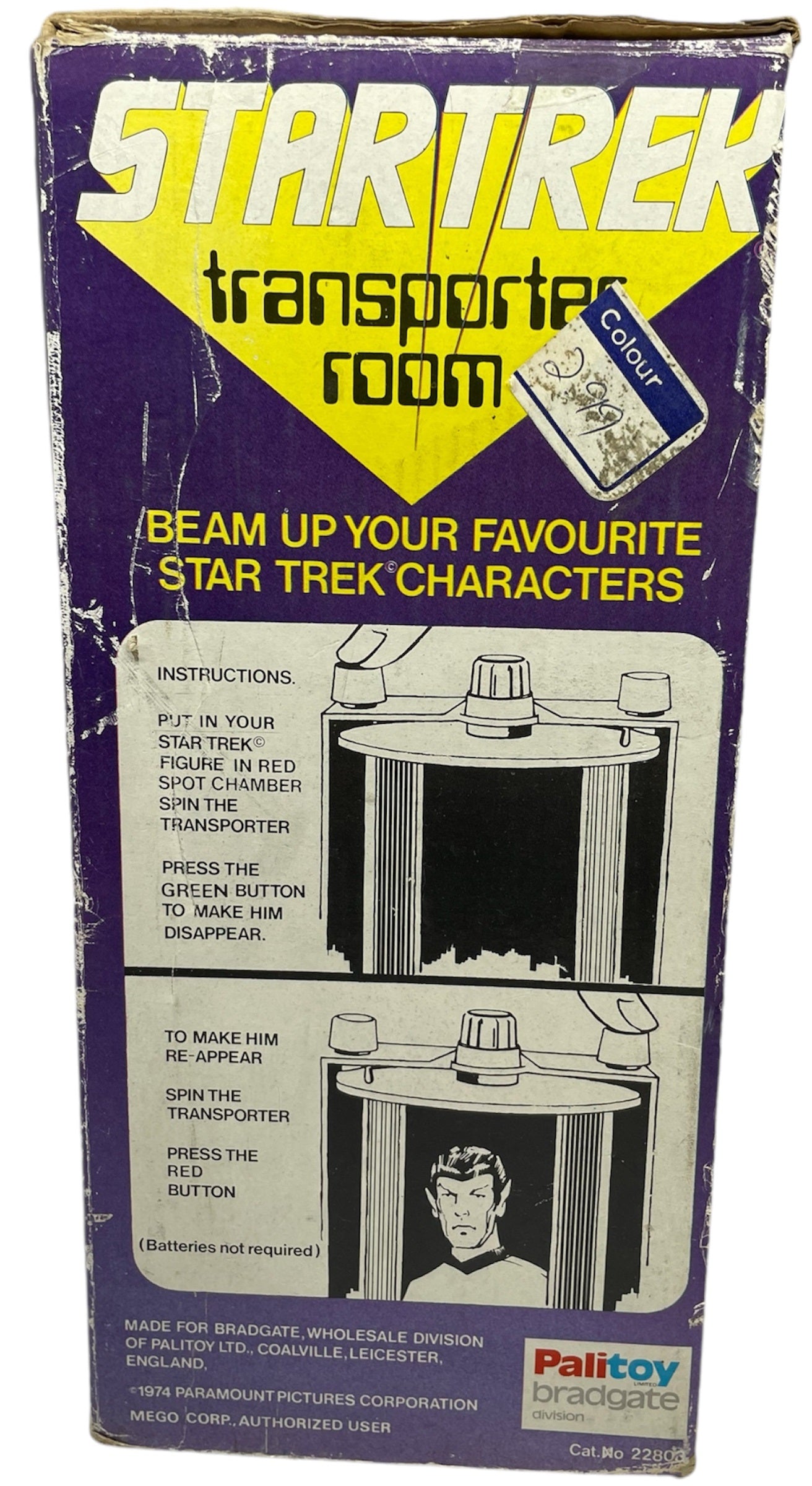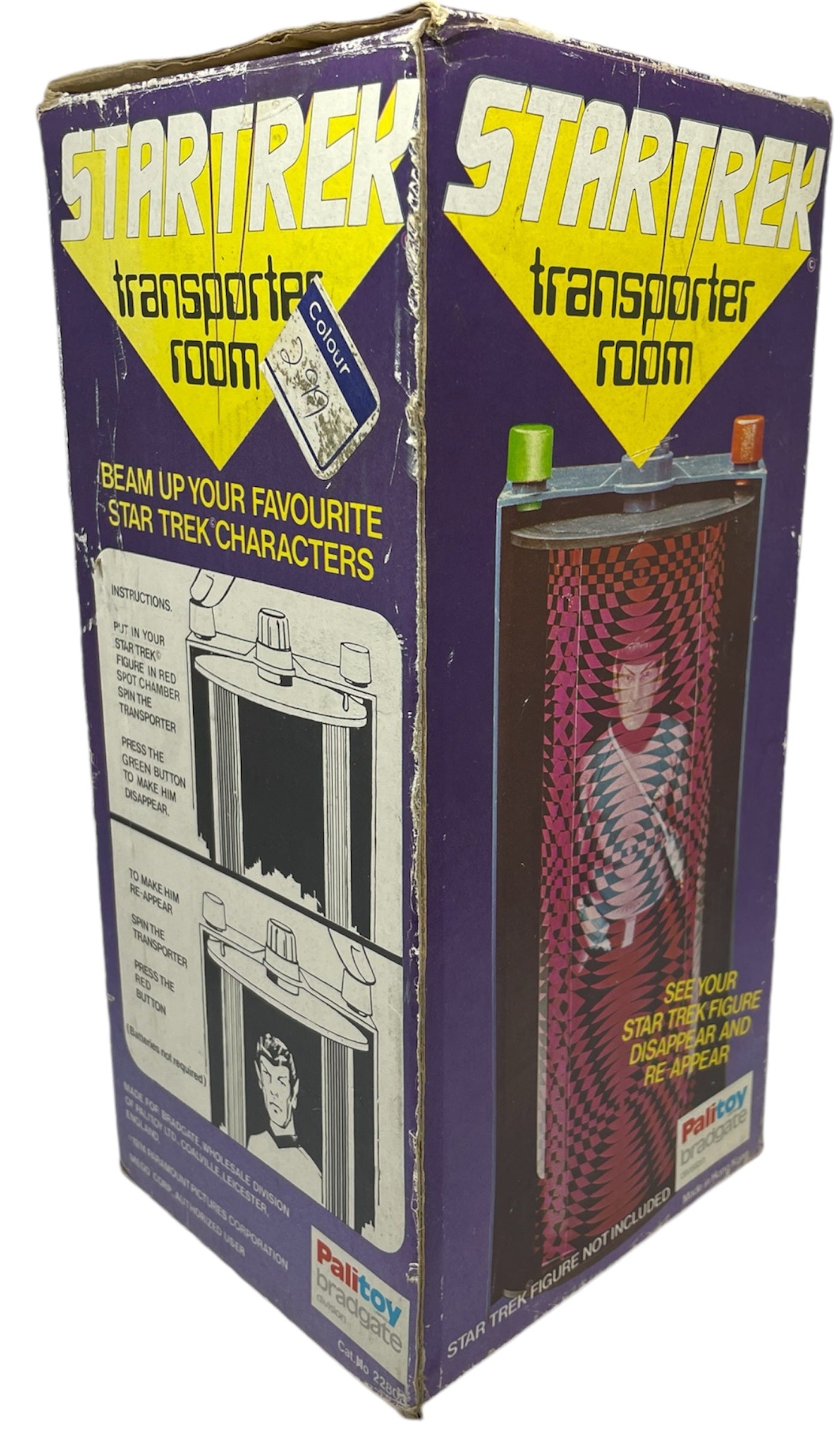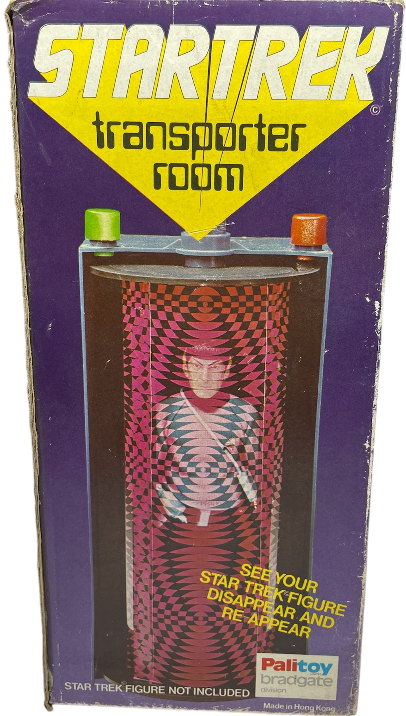 Vintage Mego/Palitoy 1974 Star Trek The Original Series USS Enterprise Transporter Room - Fully Working And Complete In The Original Box. Released by Mego in 19745 as part of their series of Star Trek The Original Series Action Figures and Playsets, and was distributed in the UK and Europe by Palitoy. Beam Up your Star Trek Mego Figures in this amazing Transporter Room, based on the transporter as seen on the USS Enterprise, and watch your figures disappear and reappear before your very eyes. Simply place your figure inside the transporter chamber, spin the middle blue knob at the top of the transporter chamber , then press the green button and your figure will disappear. Spin the middle blue knob again and press the red button and your figure will reappear before your very eyes, just like on the USS Enterprise. The playset is in fantastic condition, it is complete and fully working although some of the stickers has just began to lift slightly due to age. Comes in the original box which is also in very good solid condition, it is clean and bright, but does have some shelf wear which is mainly along the edges, and includes the inner packaging. A truly wonderful very very rare vintage Transporter Room from 1974. All orders received before 4.00pm Monday to Fridays are shipped the same day.