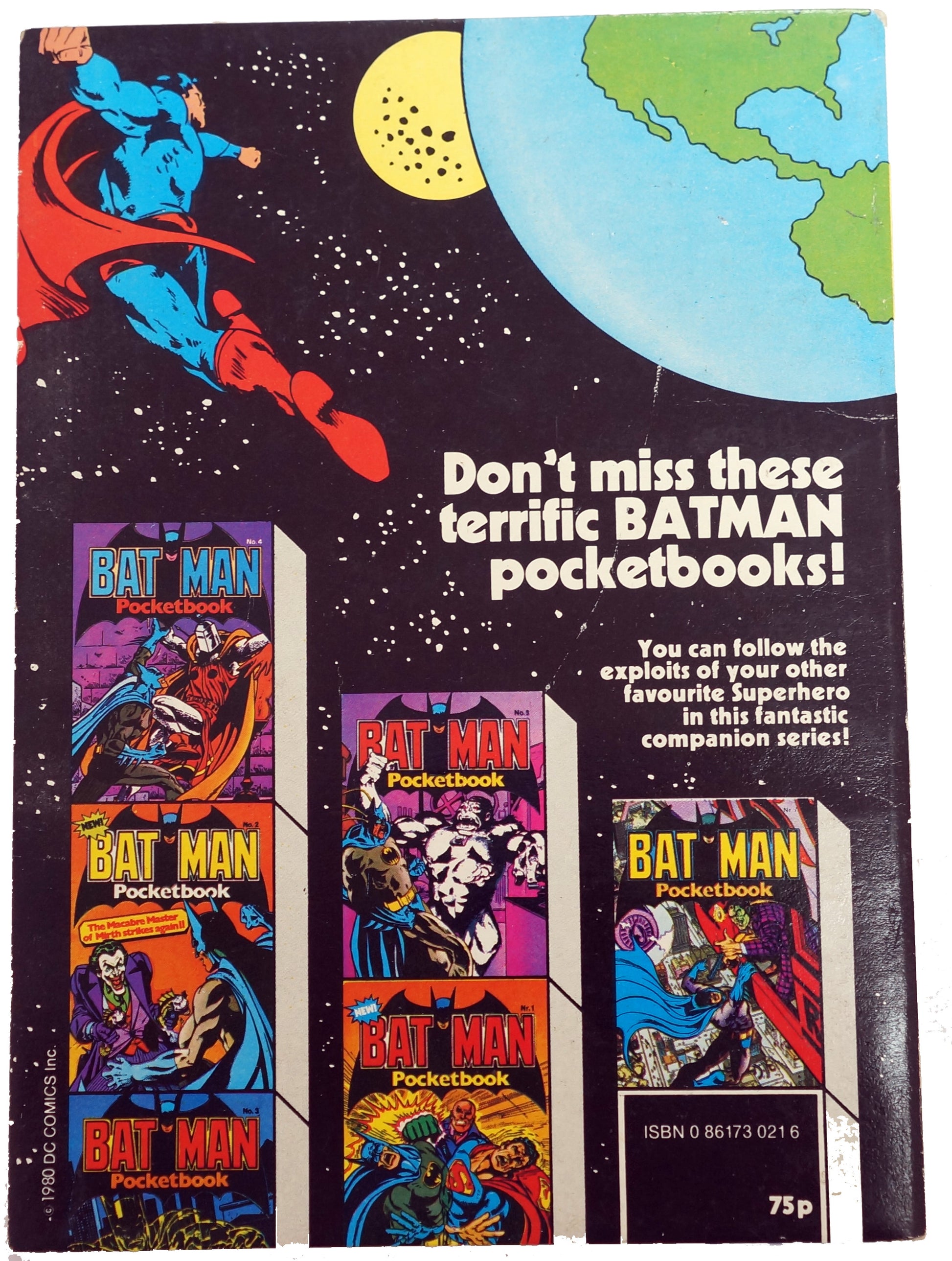 Vintage Egmont Publishing 1980 Superman Pocketbook No. 14 - Digest Size Paperback Book First Edition - Very Good Condition. Released By Egmont Publishing in 1980 as part of their series of Superman Pocketbooks. This fantastic Superman Pocketbook is number 14 in the series and features the man of steel in comic strip reprints that had originally been printed in the US DC Superman Comic, with this issue containing Let My People Grow, The Lilliput Problem, All Creatures Great And Small, plus The Justice League Of America In No Man Escapes The Manhunter and finishes with The Private Life Of Clark Kent. Softcover, 5-in. x 7-in., 98 pages in full colour. This book is in very good condition over all, which is amazing considering that it is now over 45 years old. The front and back covers are nice clean and bright with only some very very minor signs of wear along the edges. The spline is also in very good condition, again with only some very very minor signs of shelf wear on the edges. Internally the book is in fantastic condition with all 98 pages present and attached, they are clean and bright without any form of damage or markings on any page. A truly fantastic example of a vintage Superman Pocketbook from yesteryear. All orders received before 4.00pm Monday to Fridays are shipped the same day
